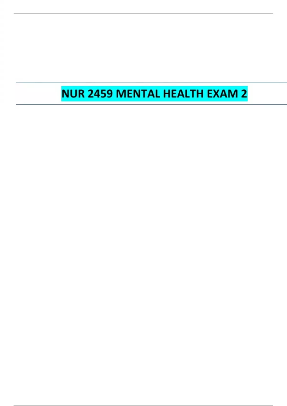 NUR 2459 MENTAL HEALTH EXAM 2| 2023 VERIFIED SOLUTION