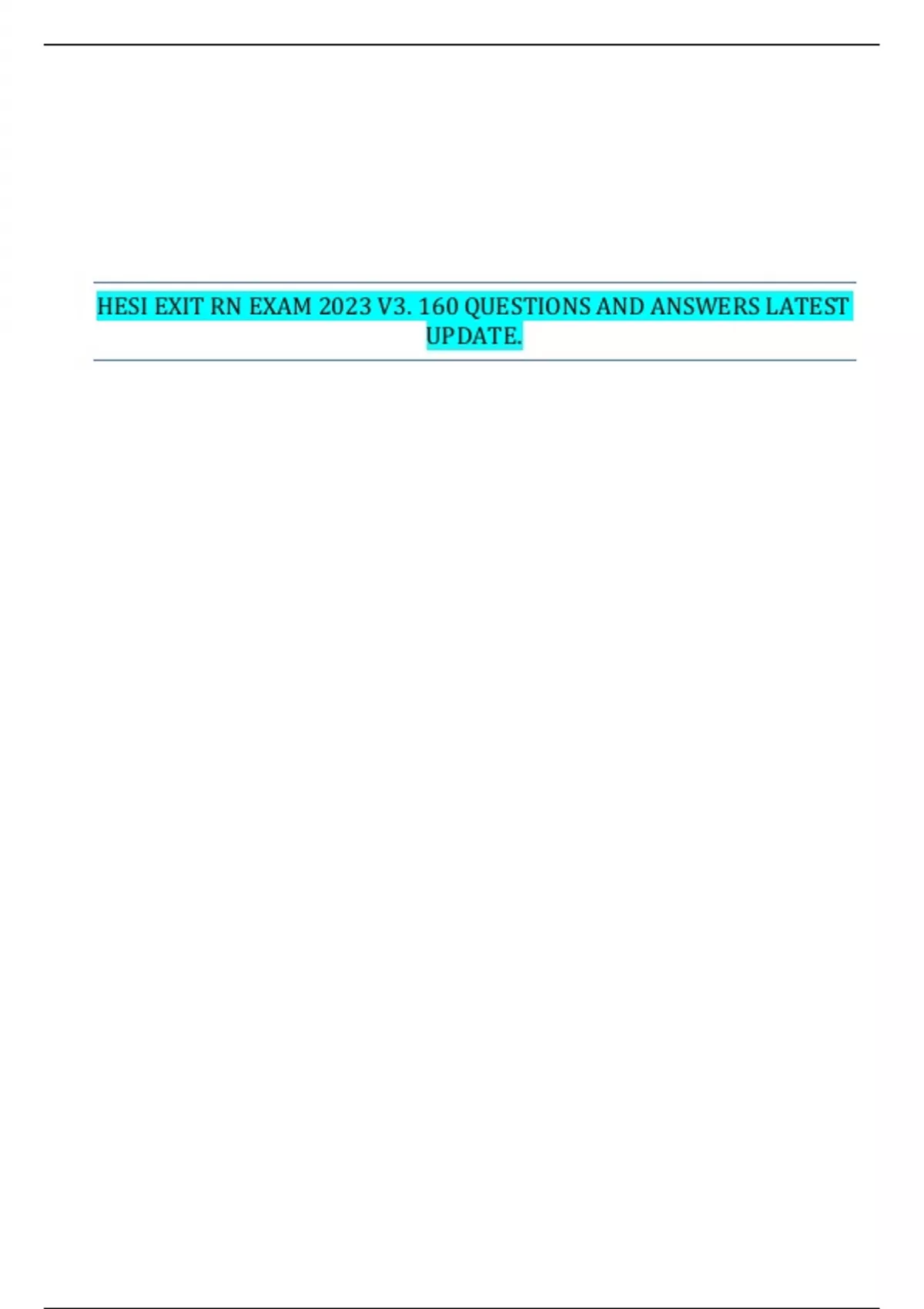 HESI EXIT RN EXAM 2023 V3. 160 QUESTIONS AND ANSWERS LATEST UPDATE.