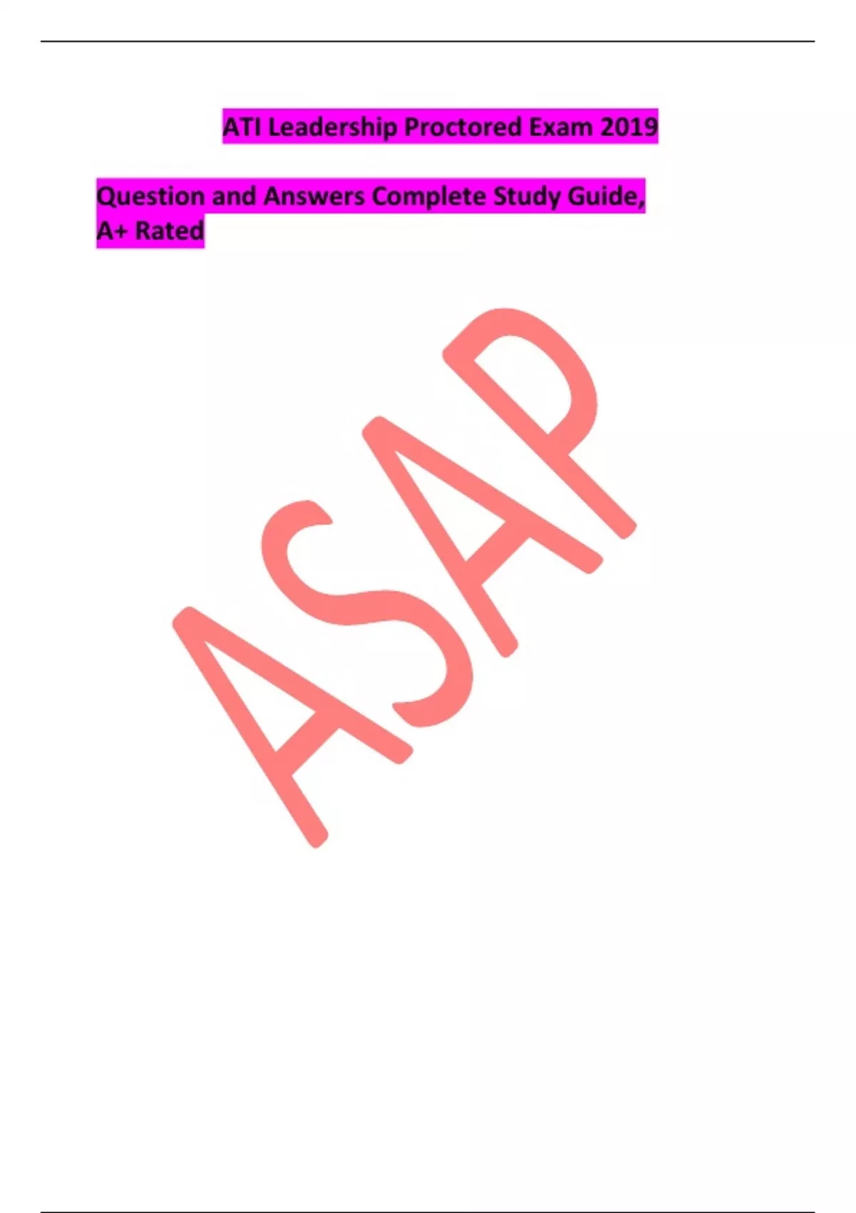 ATI Leadership Proctored Exam 2019 Question and Answers Complete Study Guide, A+ Rated