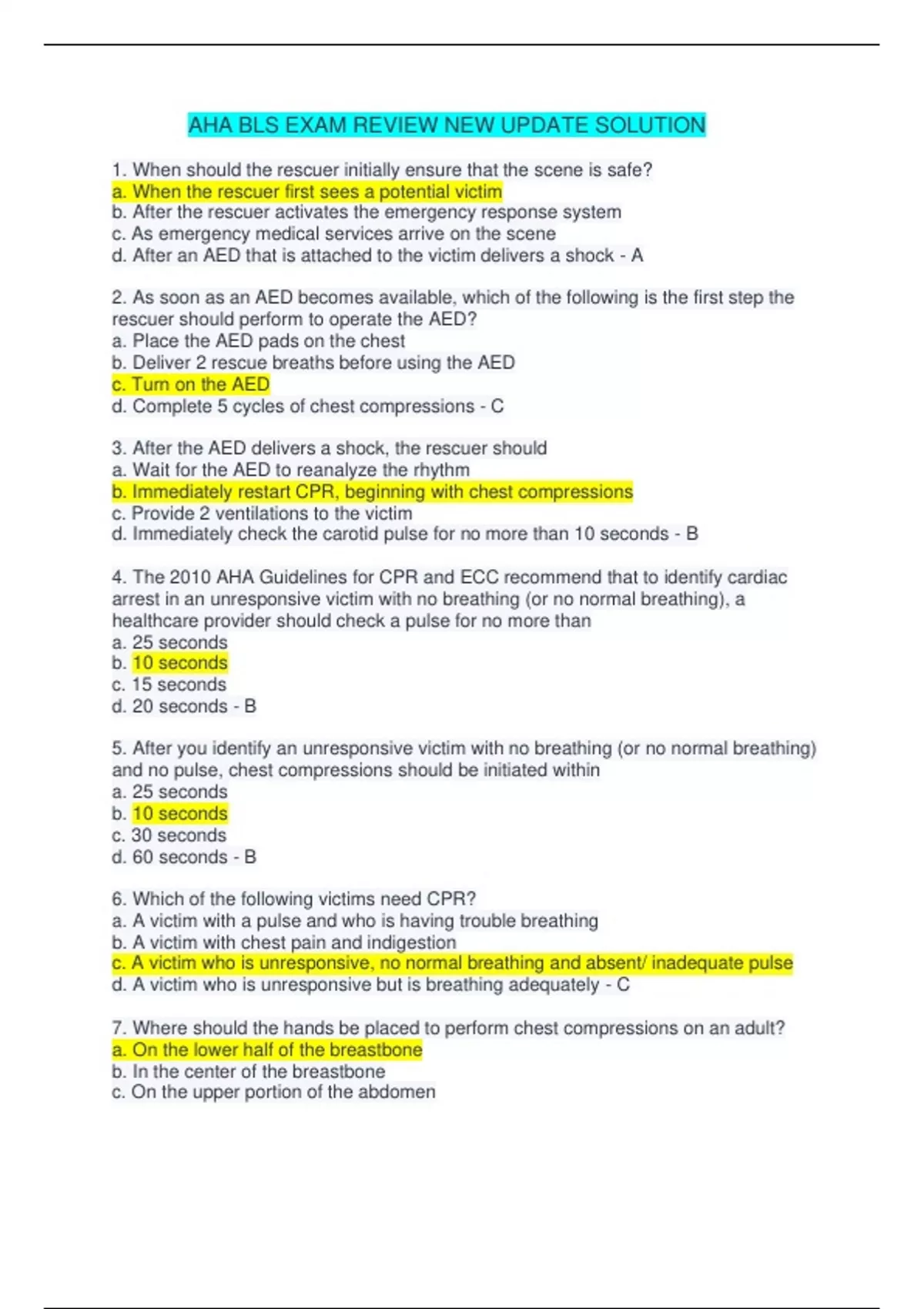 AHA BLS Certification Test new updated 2023