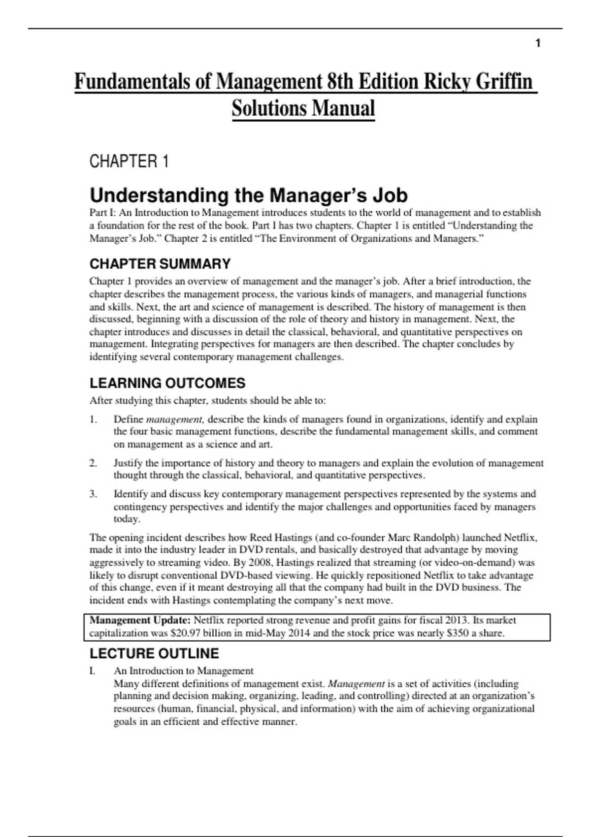 Fundamentals of Management 8th Edition Ricky Griffin Solutions Manual Complete Solution Manual Fundamentals of Management 8th Edition Ricky Griffin Questions & Answers with rationales PDF File All Pages All Chapters Grade A+