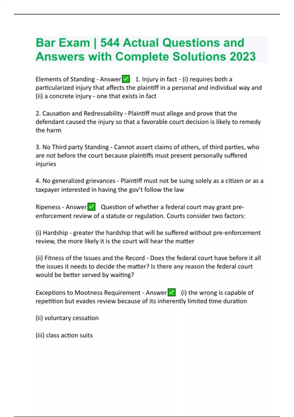 Bar Exam | 544 Actual Questions and Answers with Complete Solutions 2023