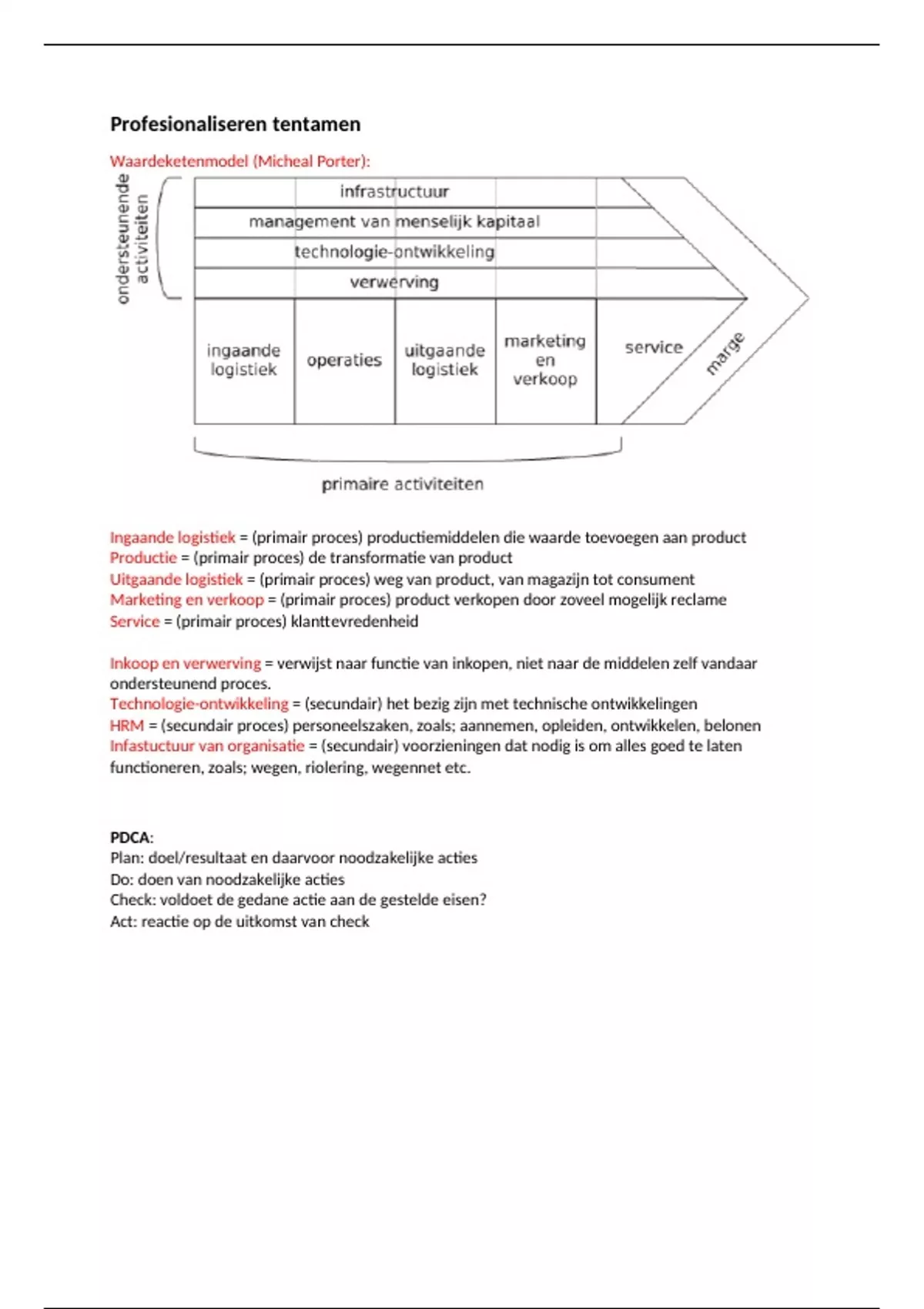 Infastuctuur van organisatie = (secundair) voorzieningen dat nodig is om alles goed te laten