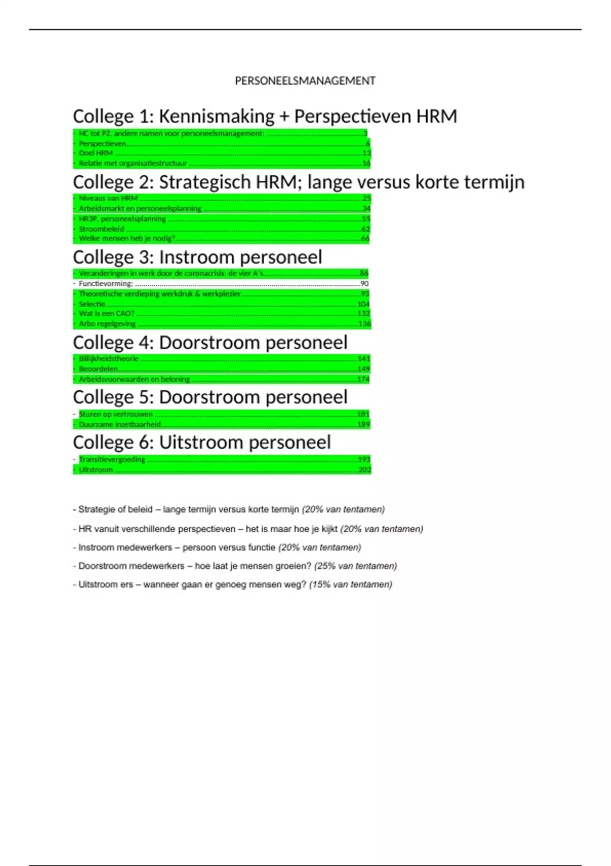Samenvatting van 18 pagina's voor het vak Personeelsmanagement aan de HAN (Tentamenstof)