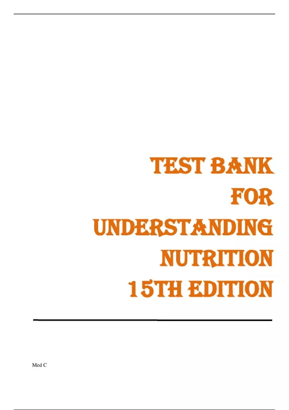 TEST BANK FOR UNDERSTANDING NUTRITION, 15TH EDITION, ELLIE WHITNEY, SHARON RADY ROLFES
