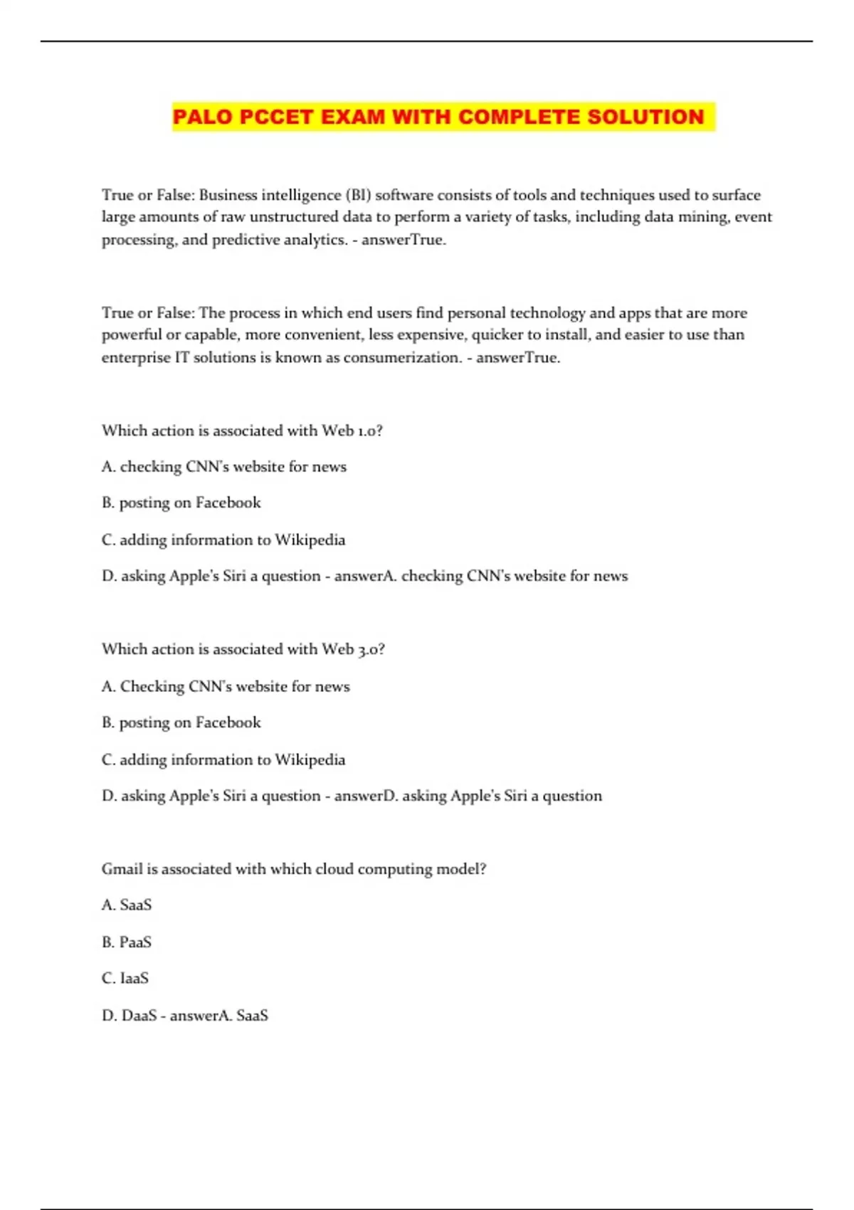 D. SaaS - answerC. PaaS