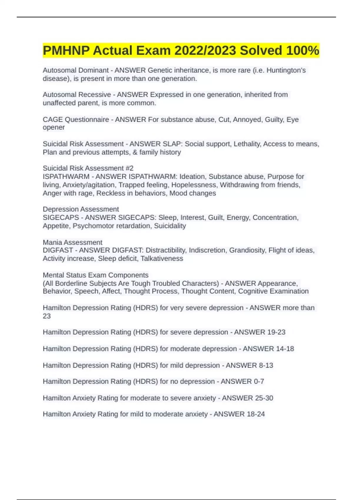 PMHNP Complete and comprehensive Review Study Guide