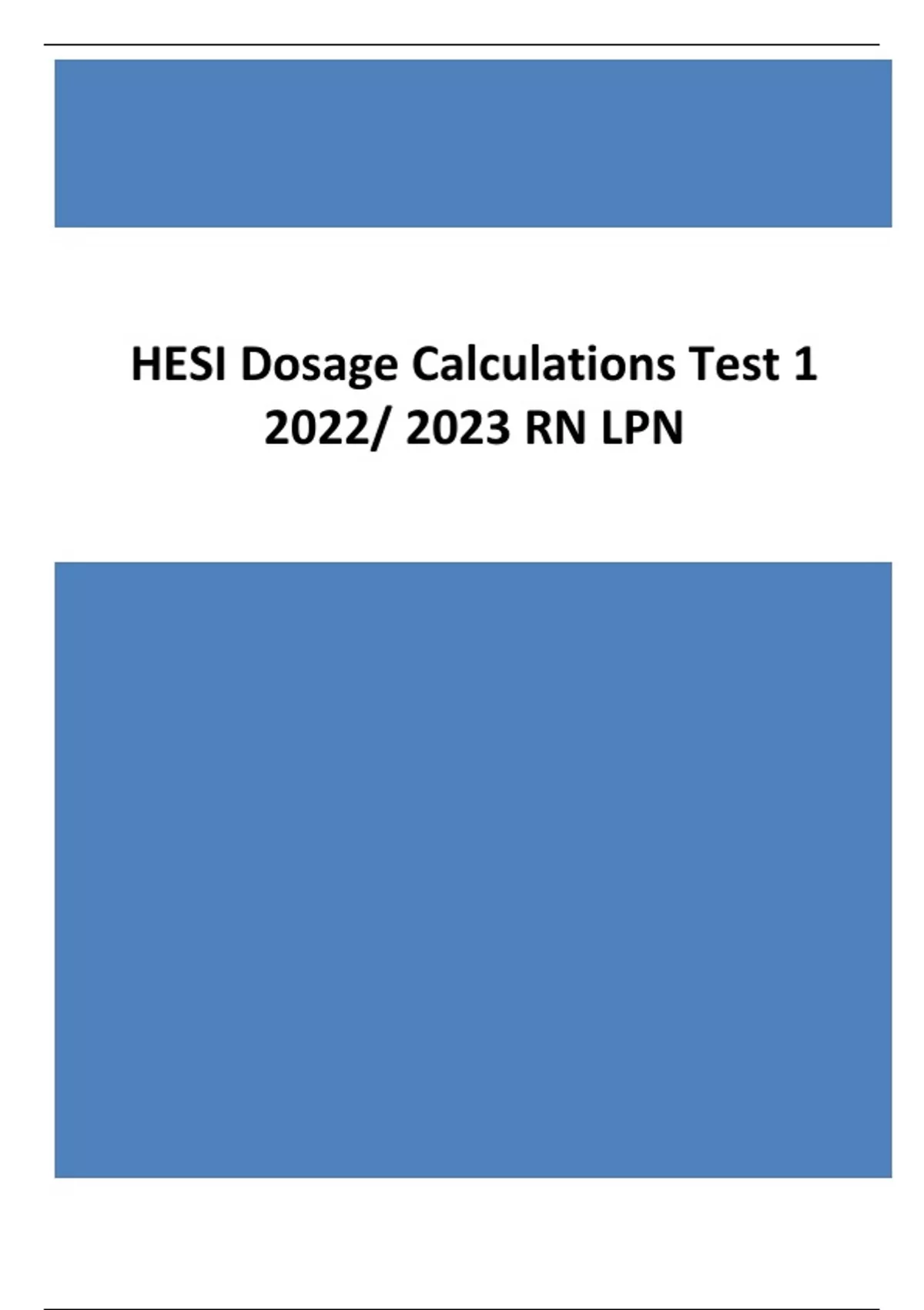 HESI Dosage Calculations Test 1 2022/ 2023 RN LPN