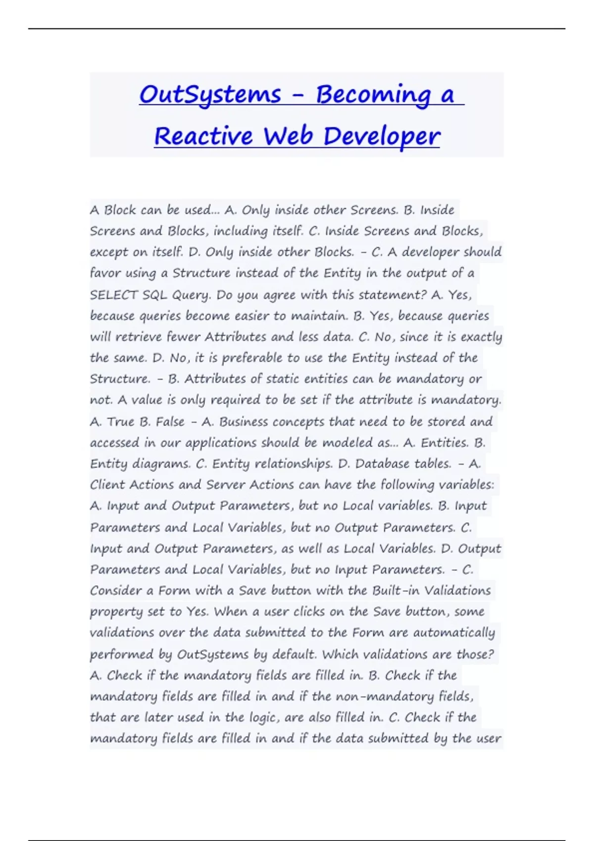 except on itself. D. Only inside other Blocks. - C. A developer should