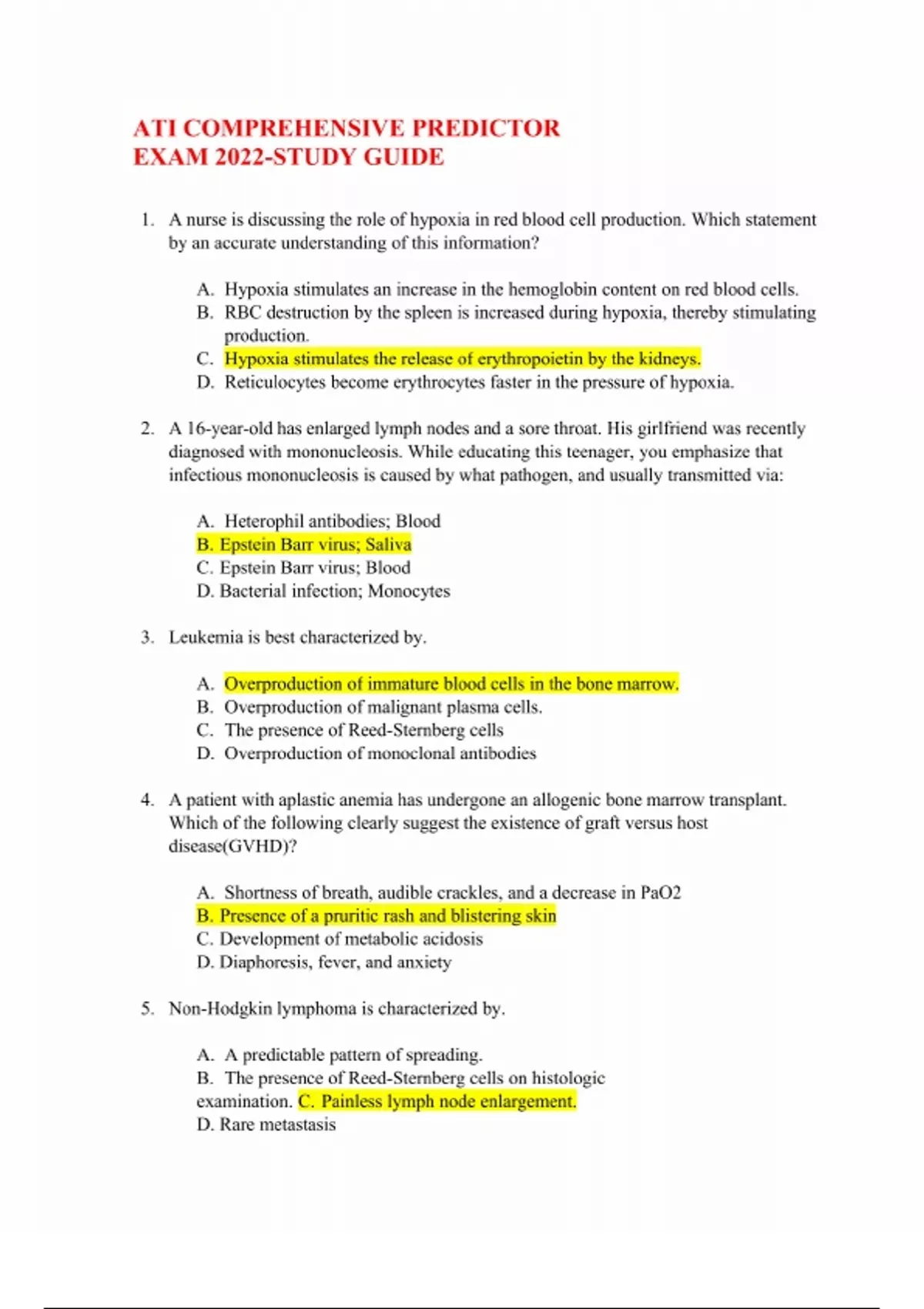 ATI COMPREHENSIVE PREDICTOR EXAM 2022 STUDY GUIDE