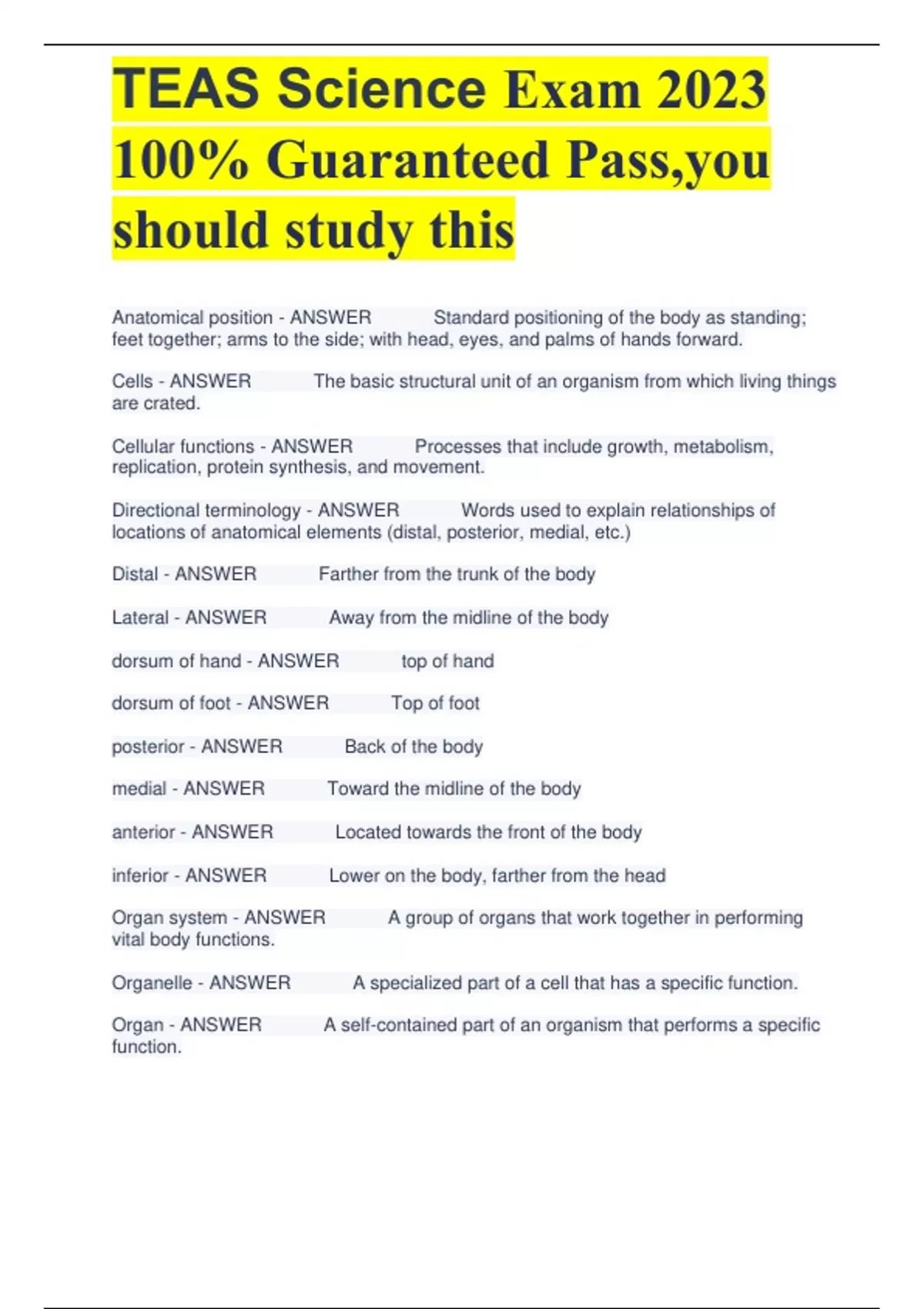 TEAS Science Exam 2023 100% Guaranteed Pass,you should study this