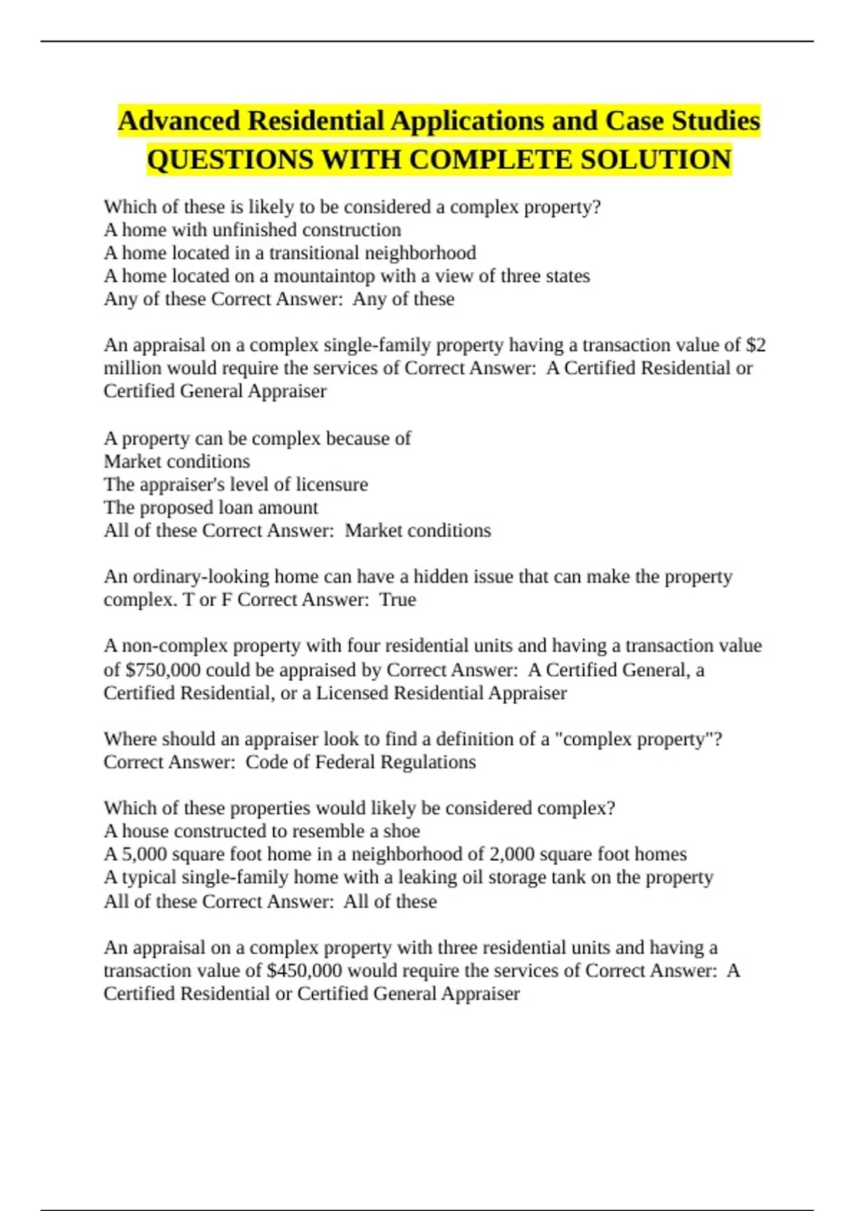appraiser when dealing with complex properties"? Correct Answer: You must