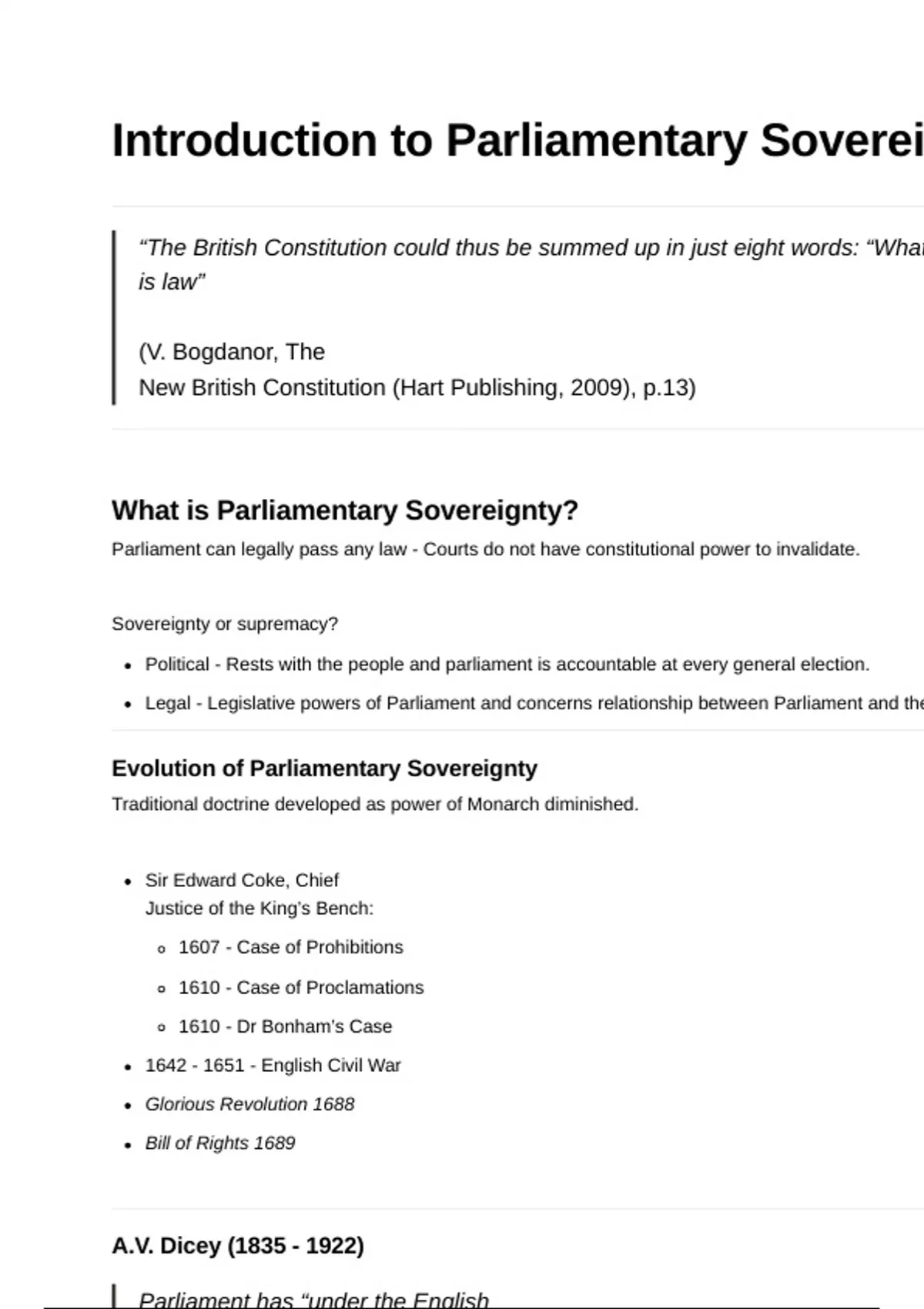 Parliament can legally pass any law - Courts do not have constitutional power to invalidate.
