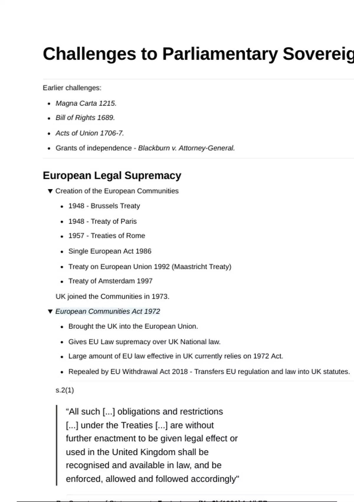 Large amount of EU law effective in UK currently relies on 1972 Act.