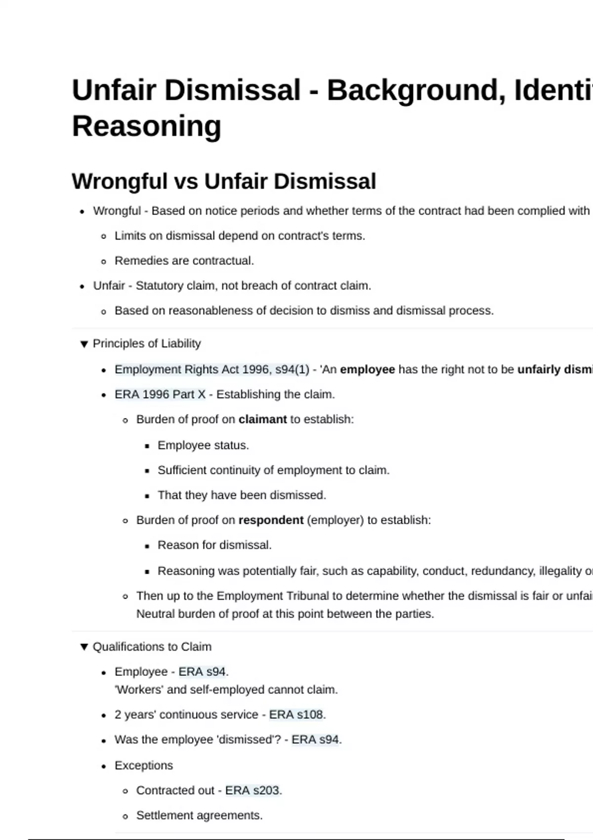 Unfair Dismissal - Background, Identif