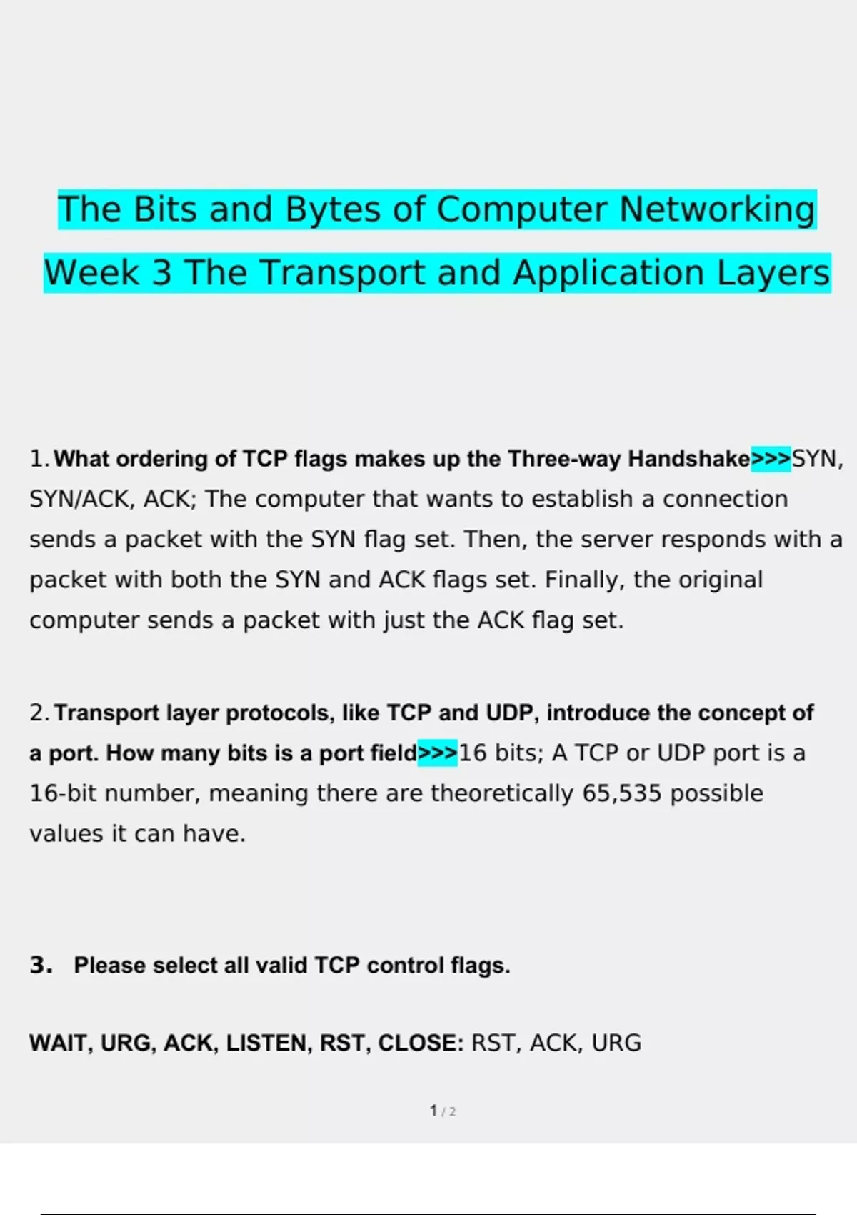 The Bits and Bytes of Computer Networking. Week 3 The Transport and Application Layers.docx