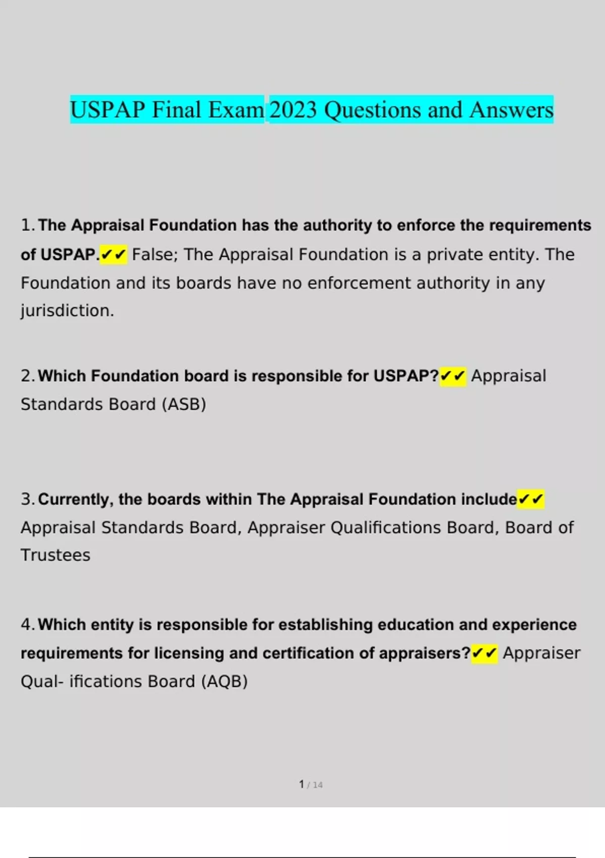 USPAP Final Exam Questions and Answers 2023