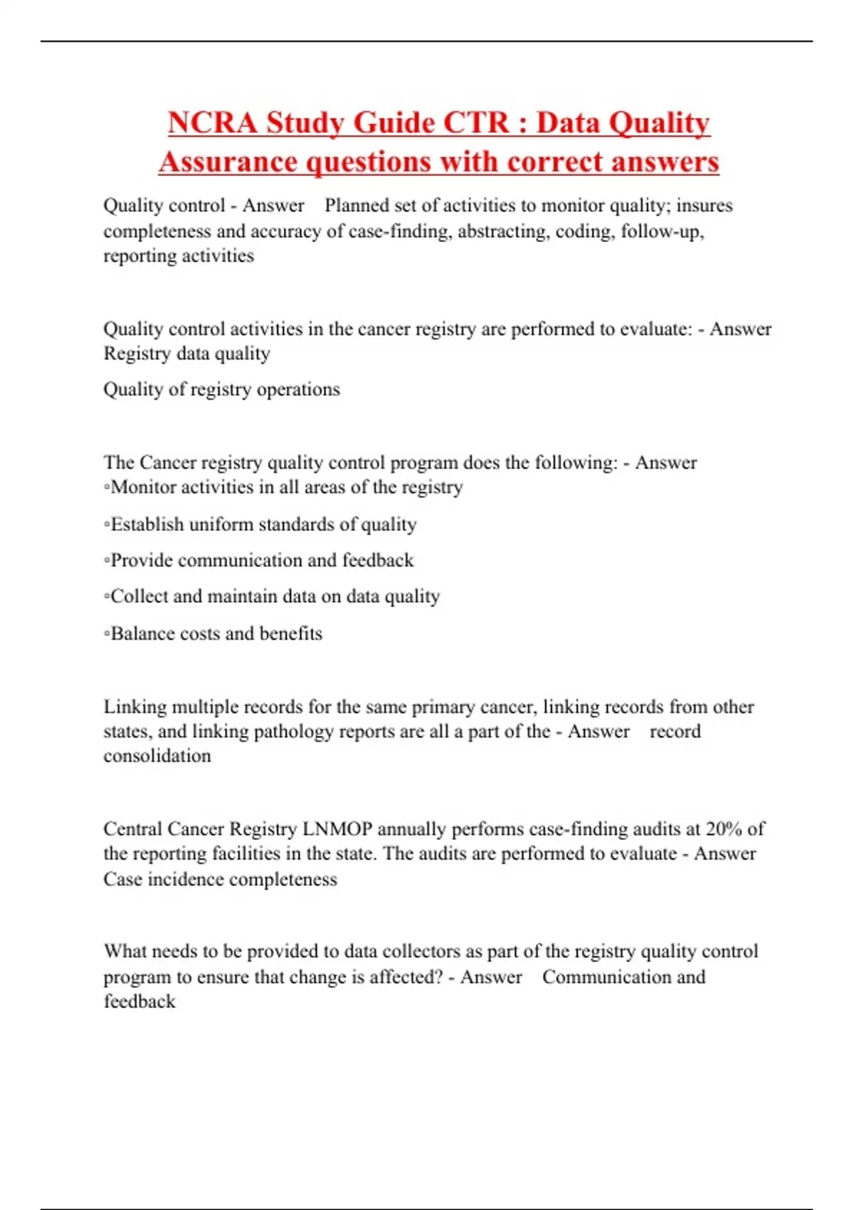 NCRA Study Guide CTR : Data Quality Assurance questions with correct answers