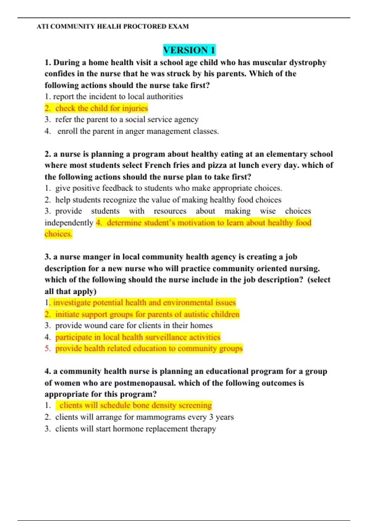 ATI COMMUNITY HEALH PROCTORED EXAM