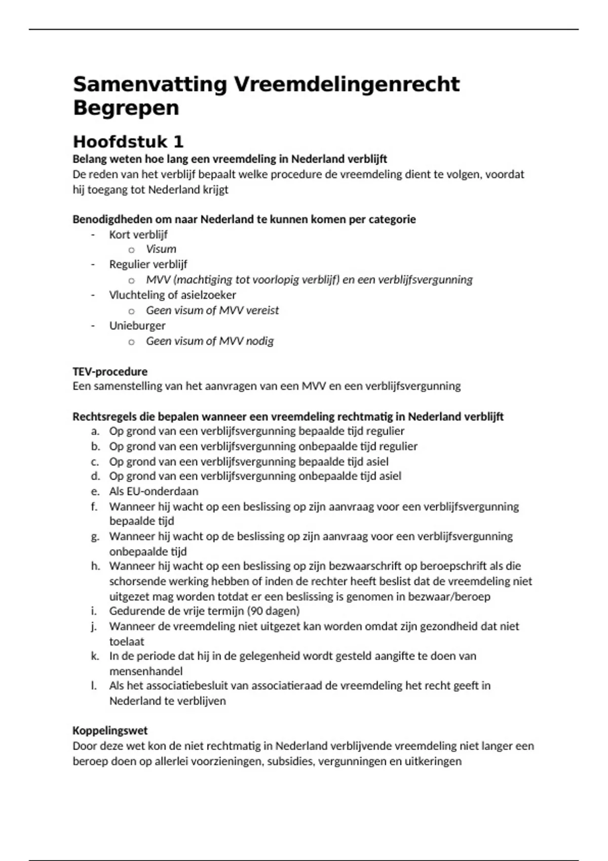 Samenvatting Vreemdelingenrecht