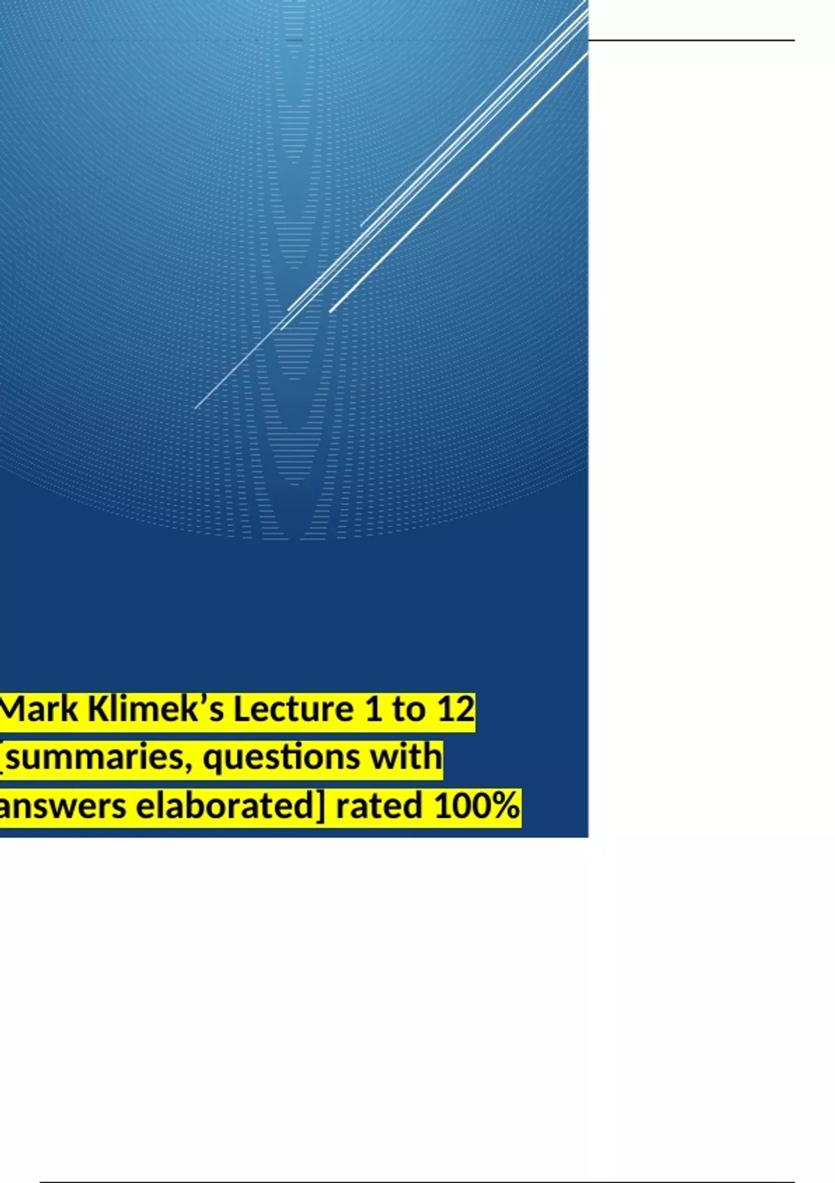 Mark Klimek’s Lecture 1 to 12 [summaries, questions with answers elaborated] rated 100%