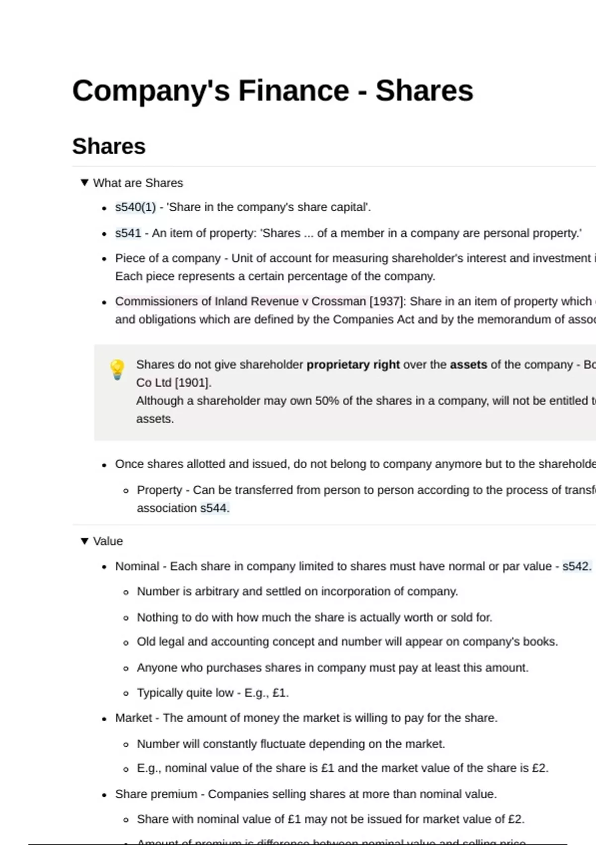 💡 Shares do not give shareholder proprietary right over the assets of the company - Bo