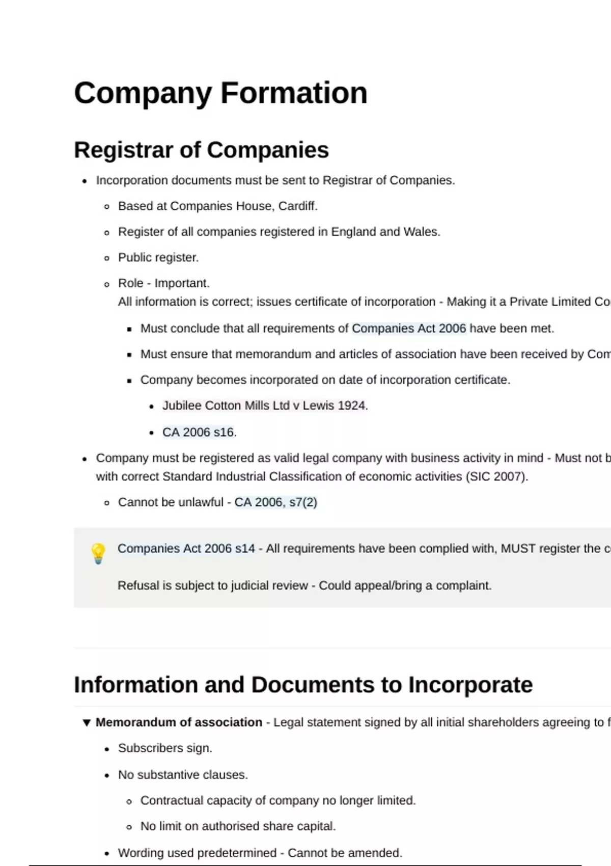 💡 Companies Act 2006 s14 - All requirements have been complied with, MUST register the co