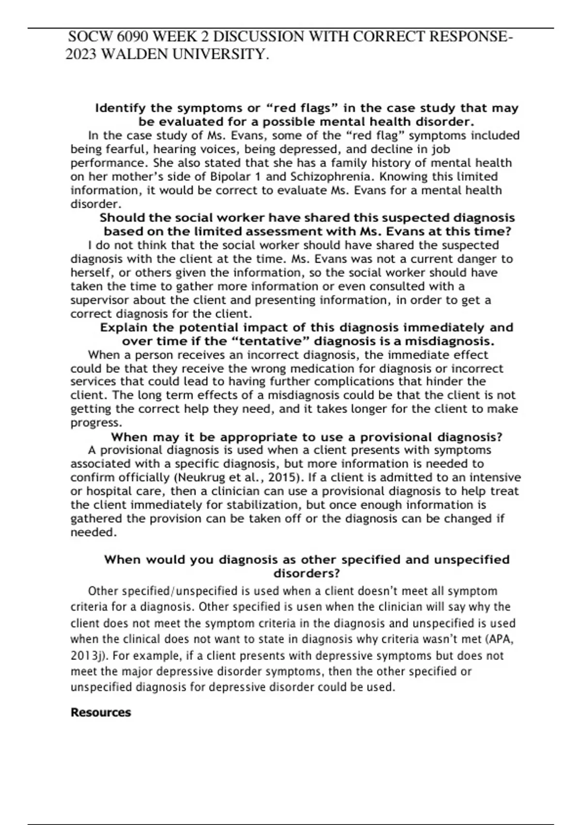 SOCW 6090 WEEK 2 DISCUSSION WITH CORRECT RESPONSE-2023 WALDEN UNIVERSITY.