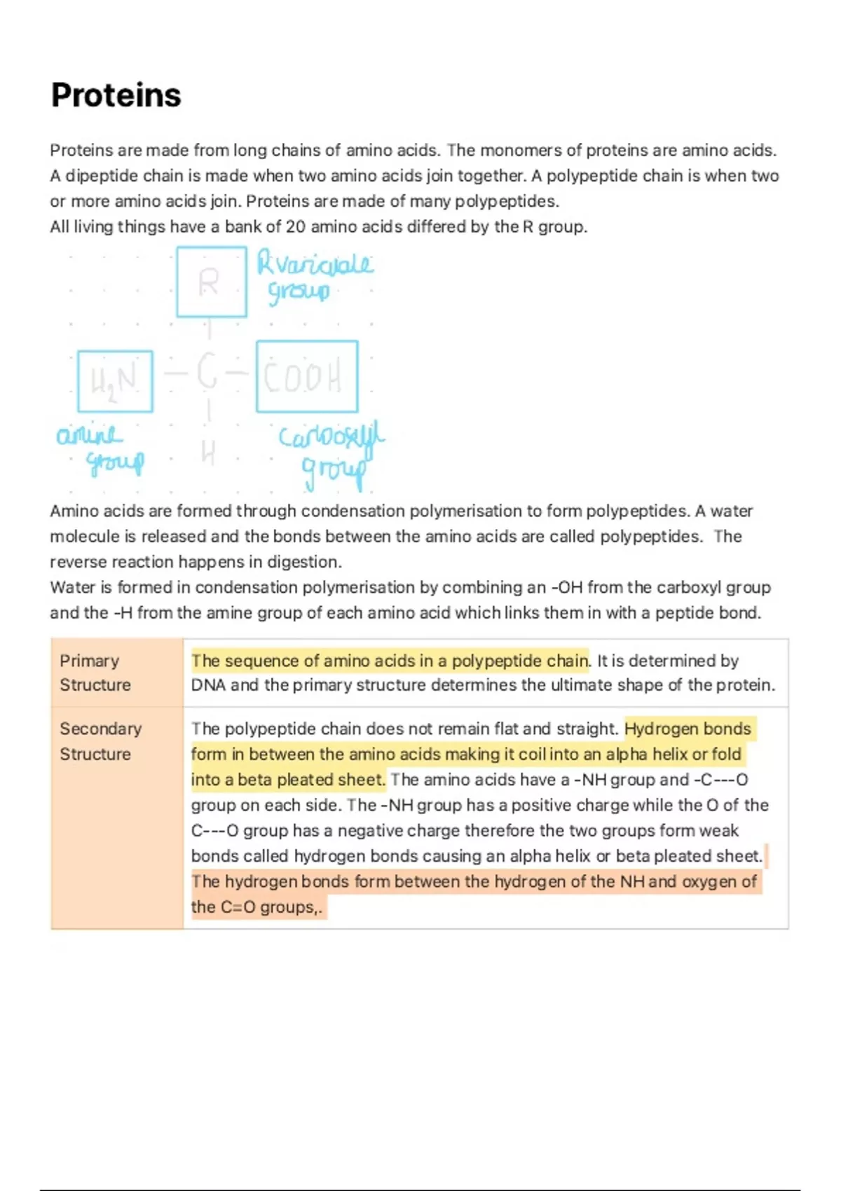 Amino acids are formed through condensation polymerisation to form polypeptides. A water