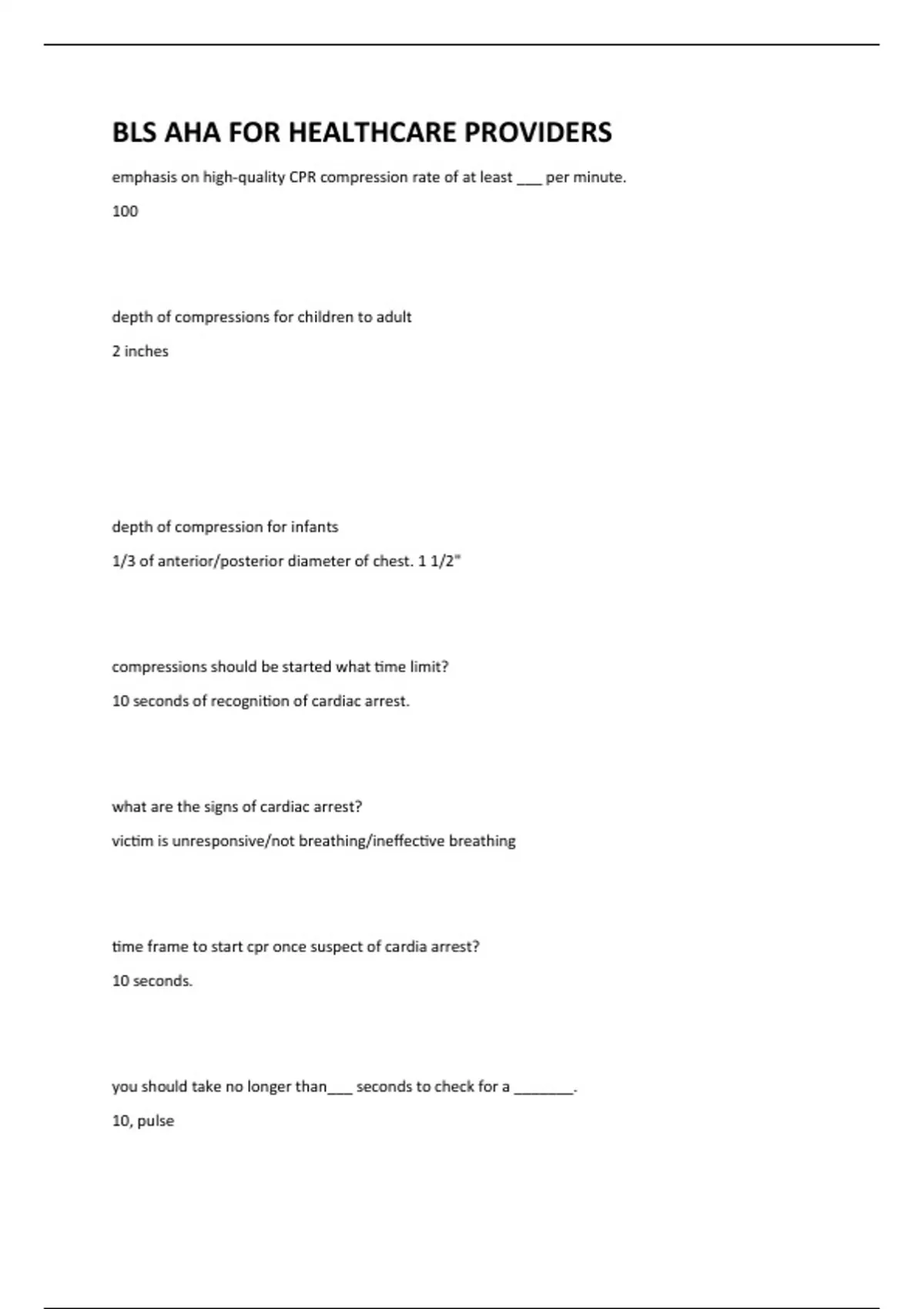 BLS AHA FOR HEALTHCARE PROVIDERS EXAM 2023/ 65 QUESTIONS AND ANSWERS/ GRADED A+