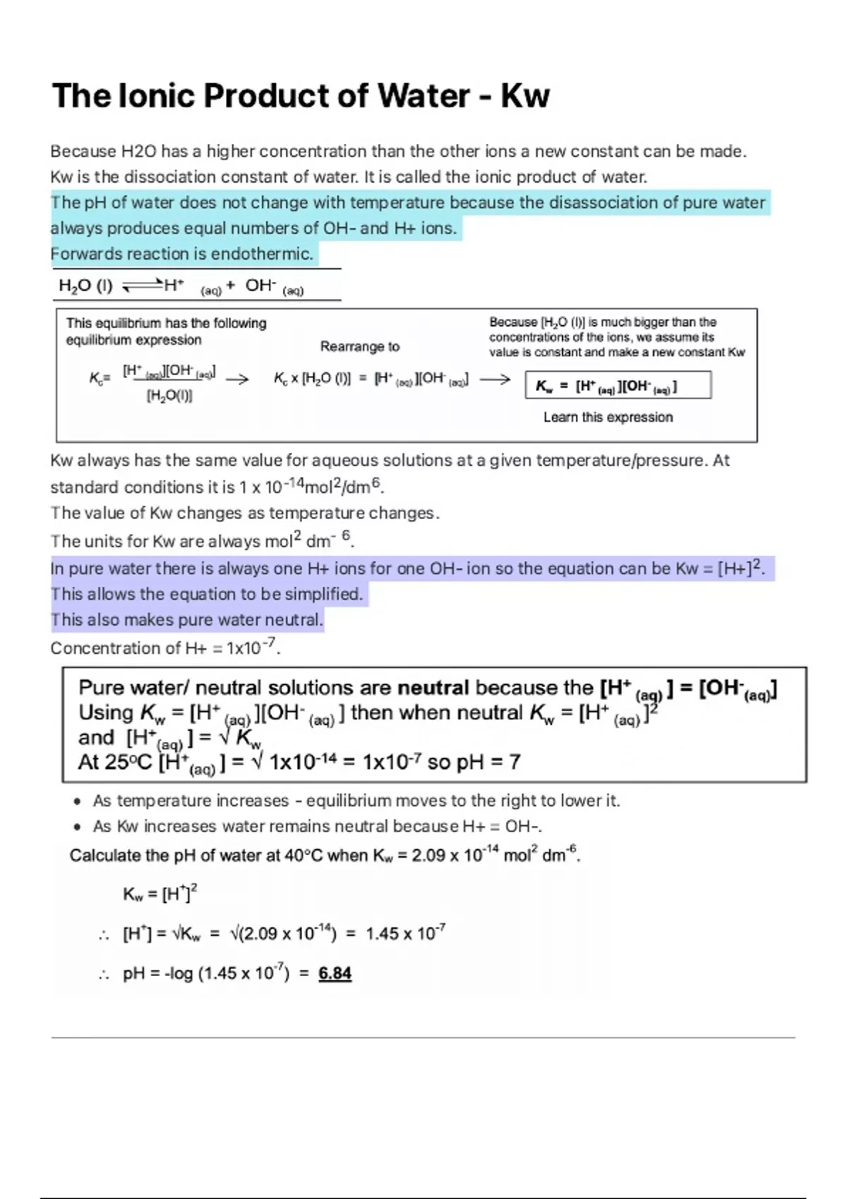 The Ionic Product of Water - Kw