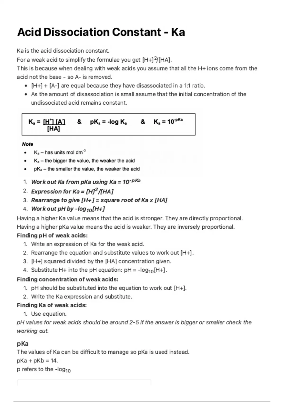 3. Rearrange to give [H+] = square root of Ka x [HA]