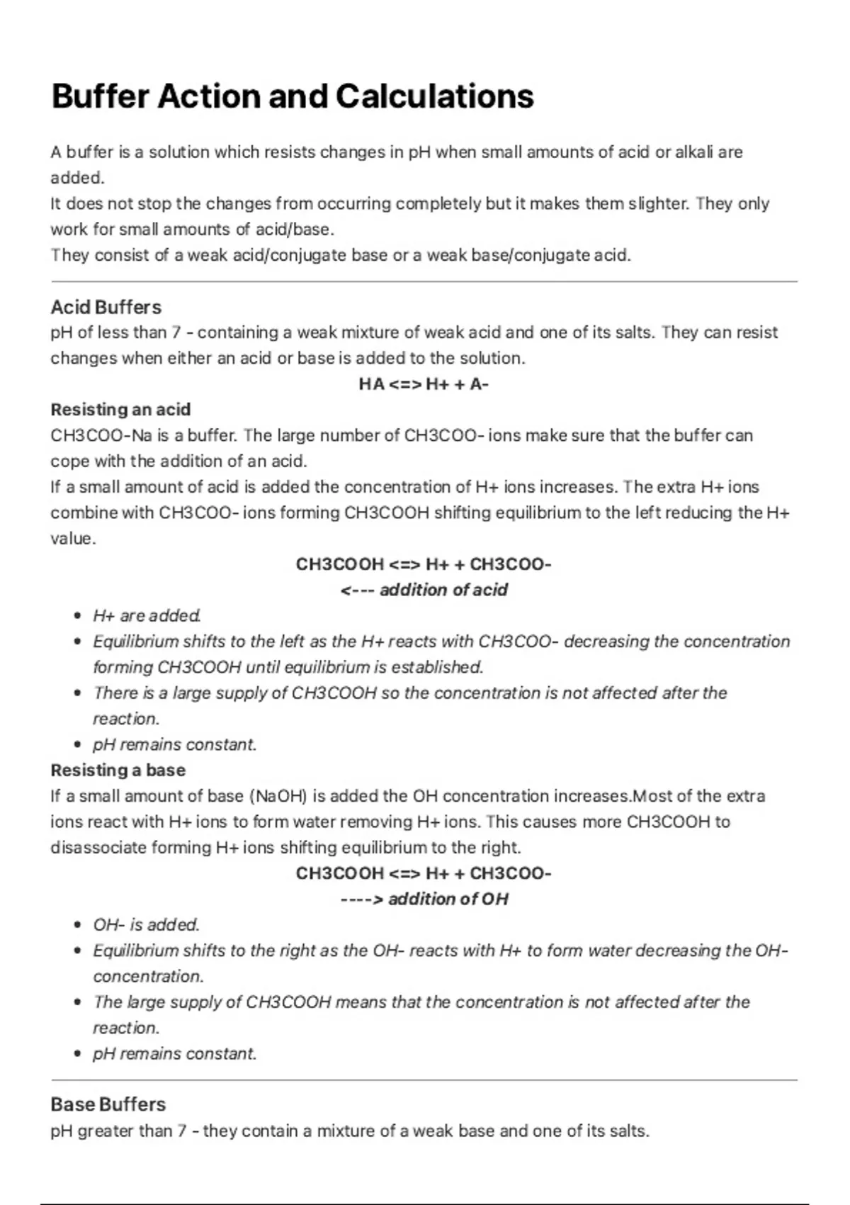 A buffer is a solution which resists changes in pH when small amounts of acid or alkali are