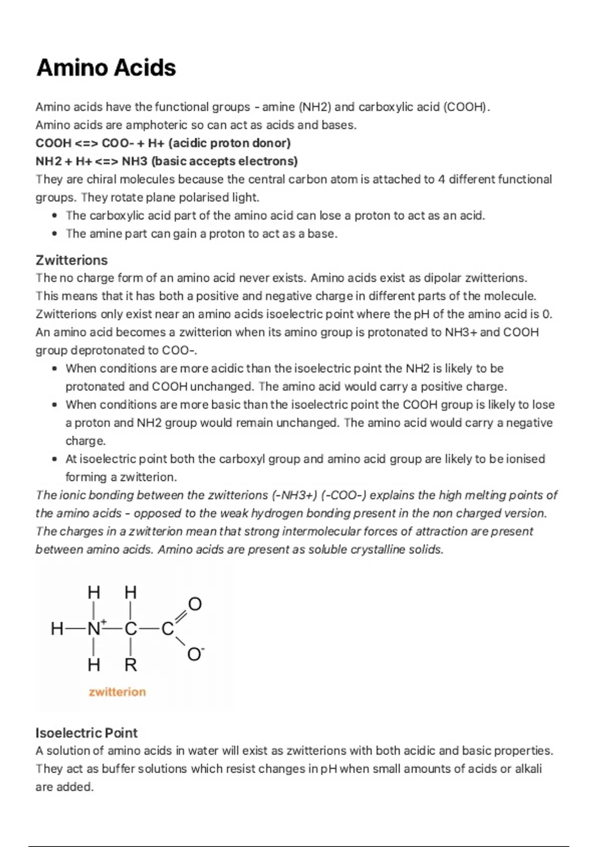 Summary Chemistry Alevel Unit 3.3.13 - Amino Acids Notes