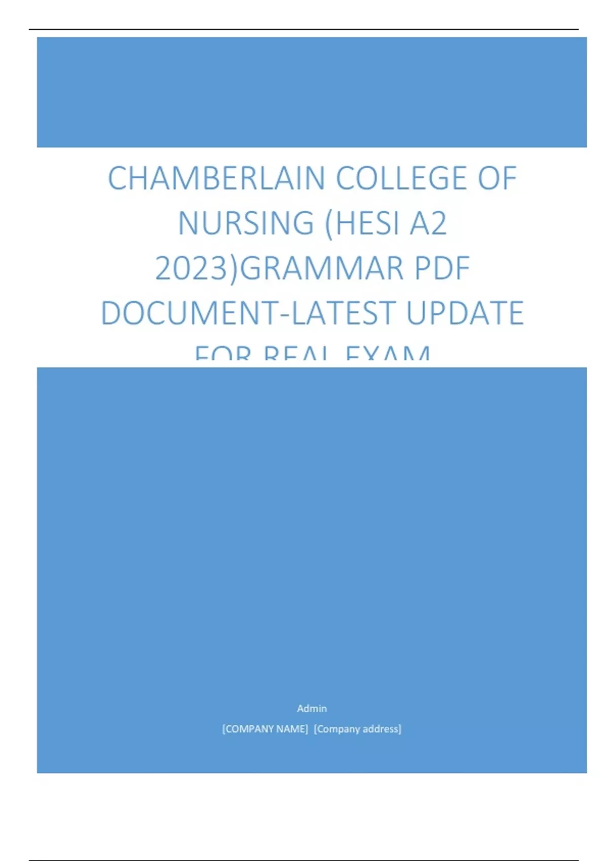 Admin [COMPANY NAME] [Company address] CHAMBERLAIN COLLEGE OF NURSING (HESI A2 2023)GRAMMAR PDF DOCUMENT-LATEST UPDATE FOR REAL EXAM HESI A2 ENTRANCE EXAM FOR CHAMBERLAIN COLLGE OF NURSING 2023 QUESTIONS WITH ANSWERS GRAMMAR BLUE MARKED WERE ON MY TEST WHICH SENTENCE IS GRAMMATICALLY CORRECT? a) Who’s coming to the party? b) Whose to blame for the economy? c) Who’s hat is this? d) Whose going to vote? 2. WHICH SENTENCE IS GRAMMATICALLY CORRECT? a) I went two the store. b) I want ice cream, too. c) The nurse gave him too shorts. d) I want to know your name. 3. WHICH SENTENCE IS GRAMMATICALLY CORRECT? a) He did well on his diet. b) He done well on his diet. c) He did good on his diet d) He done good on his diet 4. WHICH SENTENCE IS GRAMMATICALLY CORRECT? a) Several lost his or her keys on the train. b) Does everyone have their train tickets ready? c) Is everyone ready for their ice-cream sundaes? d) Somebody left his or her jacket on the train. WHICH SENTENCE SHOULD REPLACE THE FOLLOWING INCORRECT SENTENCE? “This door to remain unlocked when occupied.” a) This door will remain unlocked when the office is occupied. b) This door to remain unclosed while open. c) This sentence is correct as written. d) This office must have the door unlocked at all times. 6. WHICH SENTENCE IS GRAMMATICALLY CORRECT? a) Sarah plays her new saxophone well. b) The dog catches the freebee good. c) The band did good during the half time show. d) The band that played before ours was well. WHICH USE OF APOSTROPHE IS CORRECT IN THE SENTENCE? Because of staff change’s, the list of birthday’s was distributed to all worker’s in the business’ three offices. a) Change’s b) Worker’s c) Business’ d) Birthday’s WHICH SENTENCE IS GRAMMATICALLY CORRECT? a) The patient told the nurse, “put the flowers on that table over their.” b) The students looked at their test scores. c) Their comes a time when one choose between right and wrong. d) Their waiting for you. 9. ARRANGE ALPHABETICALLY: VERBAL, VOLUME, VOID, VITAL. a) Vital, verbal, void, volume b) Verbal, vital, void, volume c) Verbal, volume, void, vital d) Vital, verbal, volume, void IDENTIFY THE INCOMPLETE SENTENCE. a) While they were sleeping. b) Everything worked out all right. c) He wept. d) Babies are sure cute and cuddly. SELECT THE WORD OR PHRASE THAT MAKES THE SENTENCE GRAMMATICALLY CORRECT, QUESTION 11- 15. She was so mad at her boyfriend, she on him when he called. a) Yelled b) Screamed c) Speak d) Hung up 12. The GIRL quickly ran through the dark woods to get back to the house. 13. It was a beautiful performance. We all watched her from a balcony in the theater as she danced gracefully across the stage. a) Massive b) Stunningly c) Lonely d) Misery 14. A tuberculin skin test should be read within 24 hours administration. a) In b) Of c) Has d) On 15. John F. Kennedy was a senator before he president in 1960. a) Elected b) Was electing c) Was elected d) Had elected IDENTIFY THE DEPENDENT CLAUSE IN THIS SENTENCE: The mother dog left her bed as soon as the puppies were asleep. a) As soon as the puppies were asleep b) Left her bed as soon as c) The puppies were asleep d) The mother dog left her bed . SELECT THE SENTENCE IN WHICH SNAKE IS USED AS A VERB. Correct a a) The cobra is venomous snake. b) The plumber used his snake to open up the clogged pipe c) You are being a snake when you steal from me. d) The spy had to snake his way furtively (secretly) onto the train. 18. In which sentence is the form fast used as an adverb? a) The clock on the wall is ten minutes fast. b) The cars on the overpass moved fast c) The fast cars drove over the bridge. d) The batter could not hit the fast pitch. . Which phrase should be moved to the end of the sentence? The painter decided to use the urn as his subject with flowers on the table. a) As his subjectb) With flowers c) The painter d) The urn 20. Make this a complete sentence: as she watched me from the kitchen window. Correct Answer: I ran around outside as fast as I could SELECT THE CORRECT WORD(S) FOR THE BLANK IN THE FOLLOWING SENTENCE 21. Susan gave ice cream to John and _. a) Us b) Me c) We d) I . My mom and went to the store. a) Me b) I c) Us d) We 23. I am looking forward to my birthday party at work. a) Has b) Have c) Had d) Having 24. The dress you wore at my birthday party is my favorite. a) That b) Their c) When d) Which 25. You on your final exam. a) Workedb) Forget c) Did well d) Done good . A synonym is a word a meaning similar to another word. a) Having b) That have c) Who have d) Who is having In preparation for your birthday dinner, I will help _ the dinnerware on the table. a) Sit b) Set c) Sat d) Seat 28. Two students (are) their professor about possibility of obtaining good grade in class. a) Ask/Areb) Is c) Was d) Could 29. To be admitted to the university, he to make application by May 15. a) Has b) Have c) Might d) Should 30. you taking a cruise to commemorate your wedding anniversary? a) Are b) Is c) Was d) Could are the very ancient people. a) The Chinese b) Chinese c) The Chineses d) Chineses 32. The nursing put the band on the wound to the nurse. a) Aide, aide, aid b) Aide, aid, aid c) Aide, aide, aide d) Aid, aid, aide 33. Do you know a) What time is it? b) What time it is? c) What is time? d) It is what time? 34. The accident if the motorist had obeyed the speed limit sign. a) Never happened b) Would happen never c) Never would happen d) Never would have happened . After having robbed the bank, . a) The thief hid at the house of a friend b) The police searched for the thief for many weeks c) The bank president offered a reward for the thief. d) The thief’s wife became very nervous. 36. She went to the party her dislike for the host. a) In spite of b) Despite of c) Although d) Even though 37. He tried to remember the names of all the people were there that night. a) Which b) That c) Who d) Those 38. As we celebrated the start of the evening festivities, our glasses and a toas