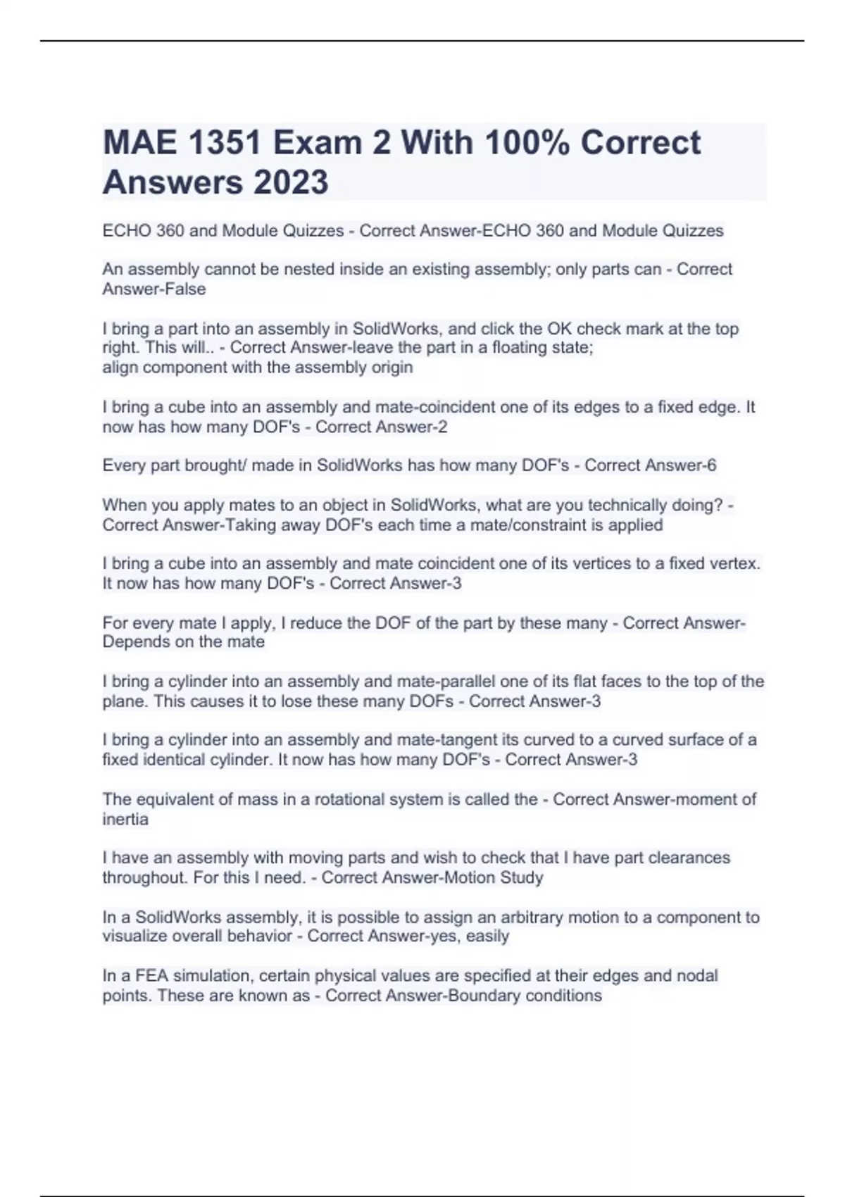 MAE 1351 Exam 2 With 100% Correct Answers 2023