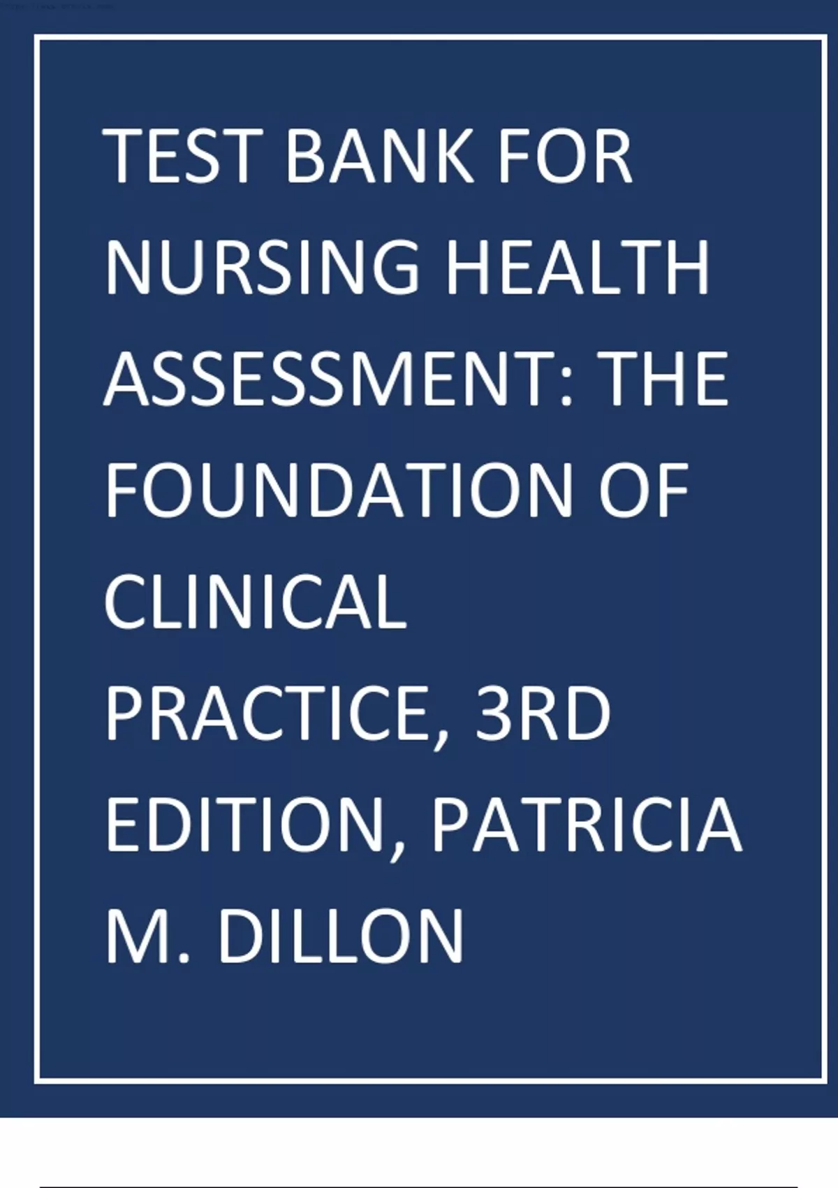 Test Bank for Nursing Health Assessment The Foundation of Clinical Practice, 3rd Edition, Patricia M. Dillon 2023
