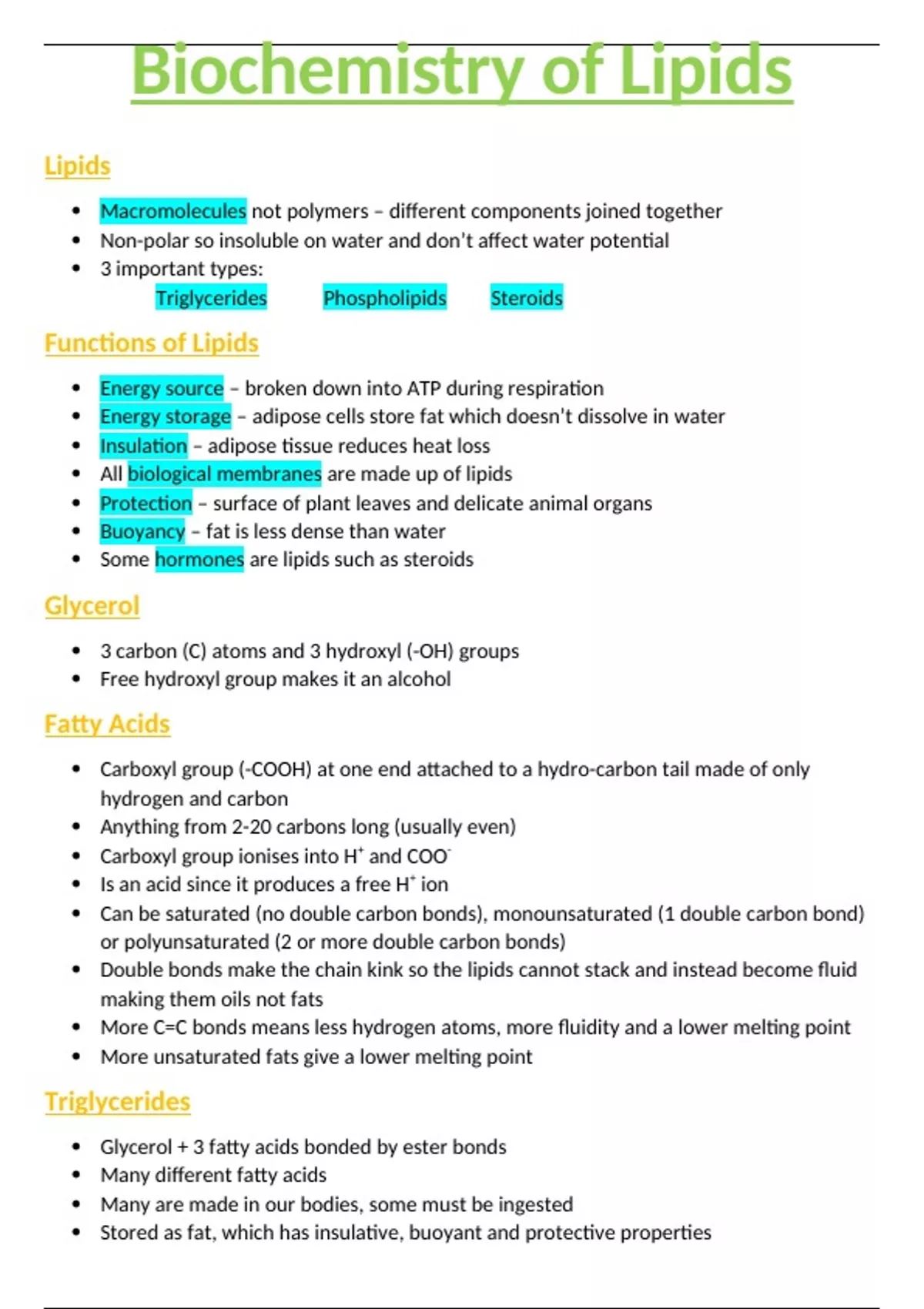 Summary OCR A/AS-Level Biology 2.2.6 Biochemistry of Lipids