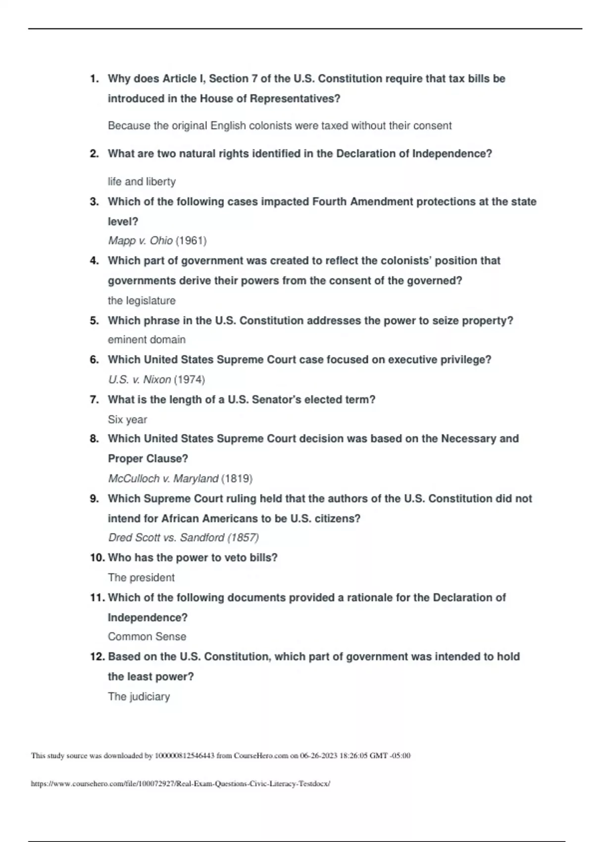 real exam questions civic literacy test