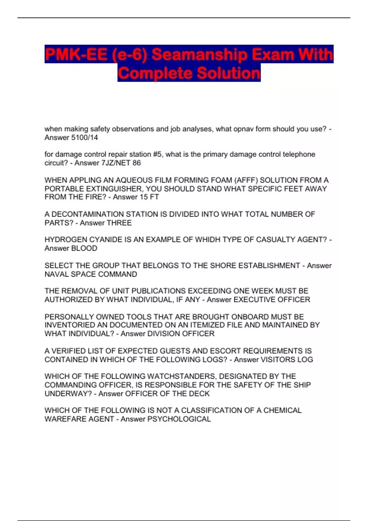 PMK-EE (e-6) Seamanship Exam With Complete Solution