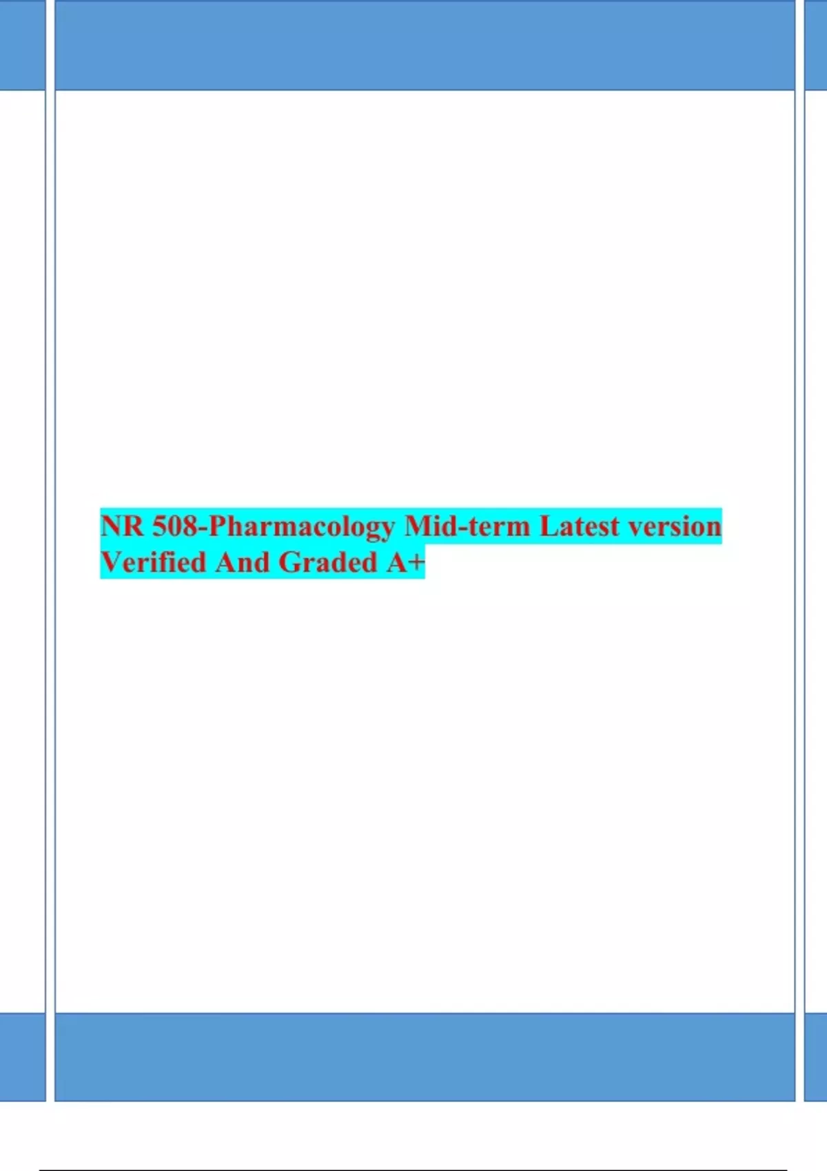 NR 508-Pharmacology Mid-term Latest version Verified And Graded A+