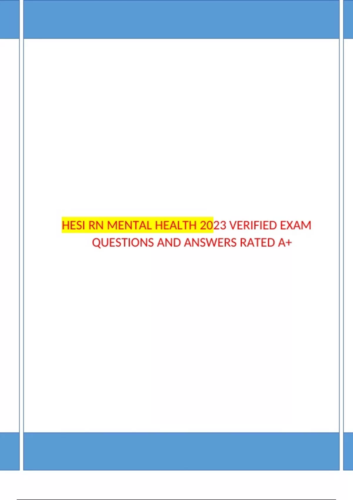 HESI RN MENTAL HEALTH 2023 VERIFIED EXAM QUESTIONS AND ANSWERS RATED A+