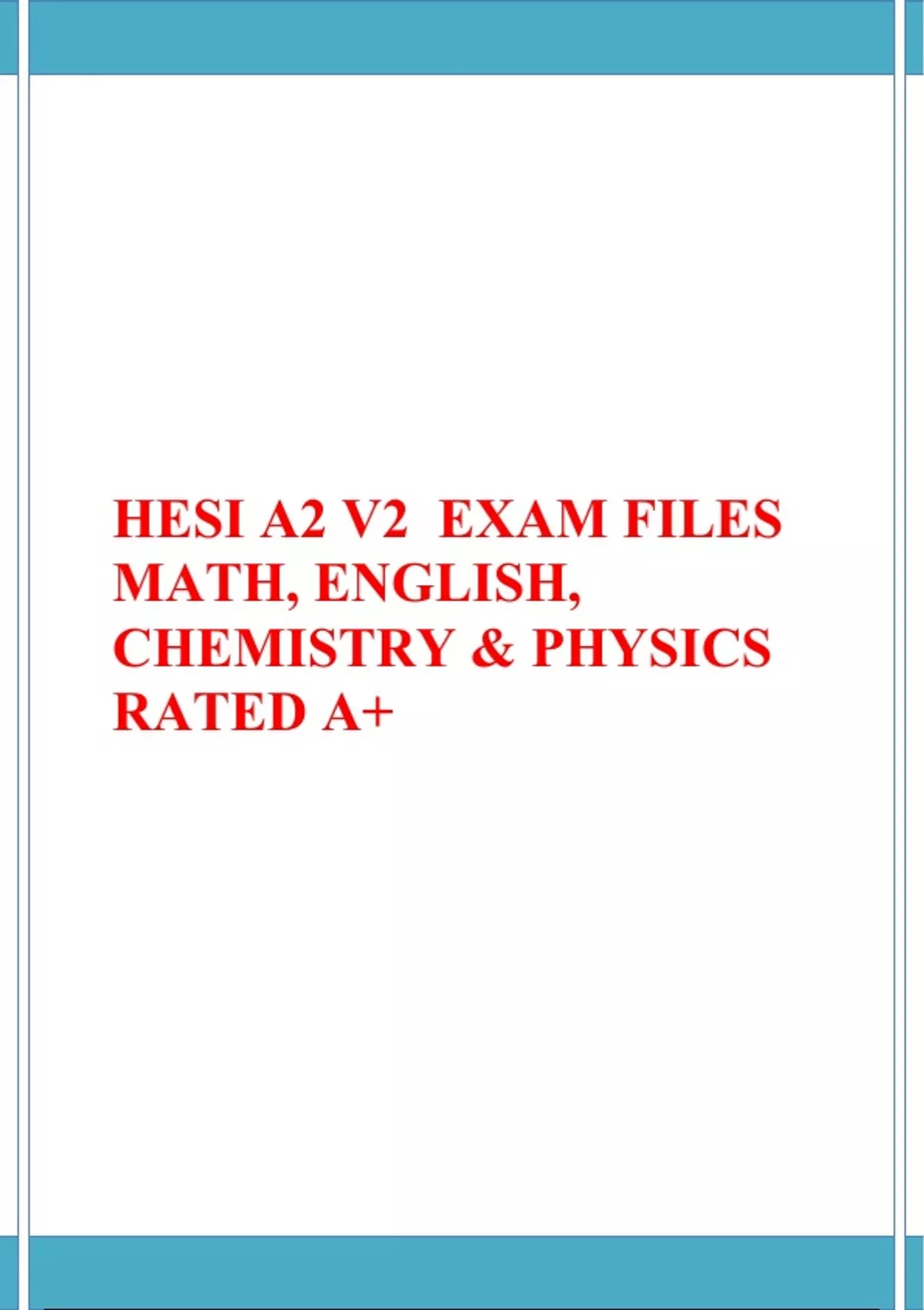 HESI A2 V2 EXAM FILES MATH, ENGLISH, CHEMISTRY & PHYSICS RATED A+