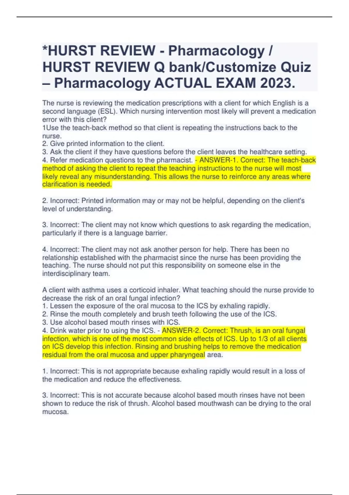 *HURST REVIEW - Pharmacology / HURST REVIEW Q bank/Customize Quiz – Pharmacology ACTUAL EXAM 2023.