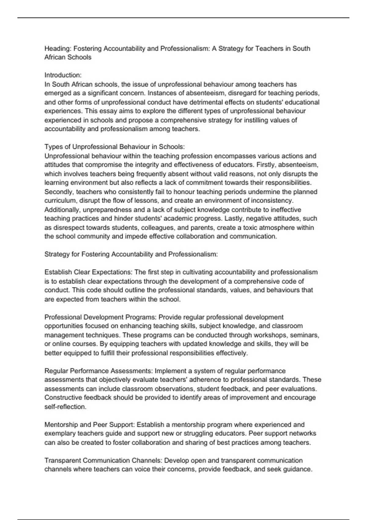 Heading: Fostering Accountability and Professionalism: A Strategy for Teachers in South