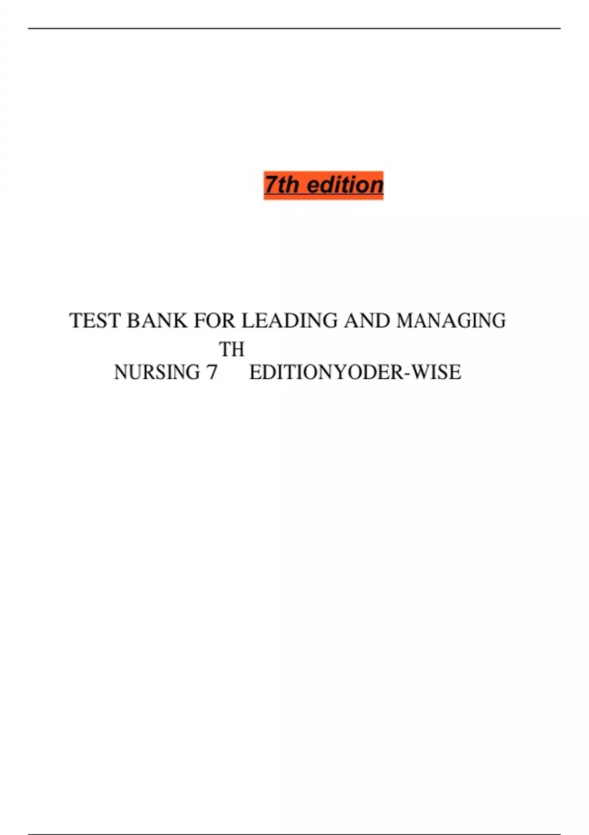 TEST BANK FOR LEADING AND MANAGING NURSING 7 TH EDITIONYODER-WISE