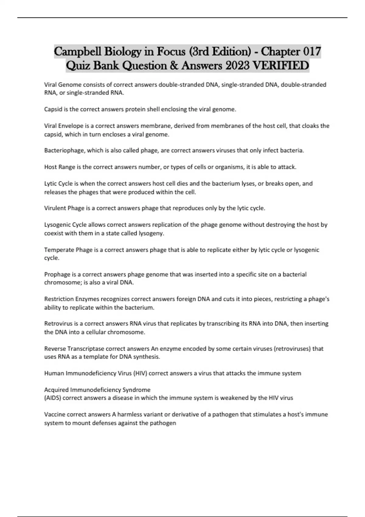 Quiz Bank Question & Answers 2023 VERIFIED