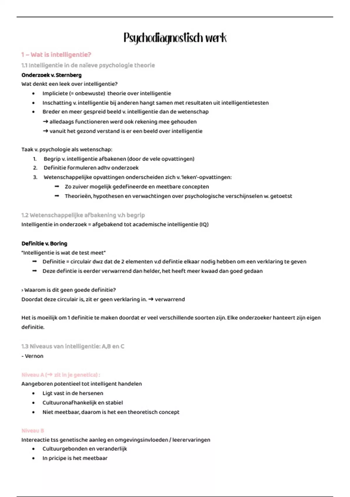 1. Begrip v. intelligentie afbakenen (door de vele opvattingen)
