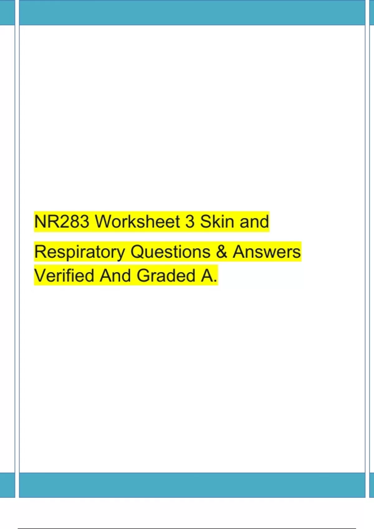 NR283 Worksheet 3 Skin and Respiratory Questions & Answers Verified And Graded A.