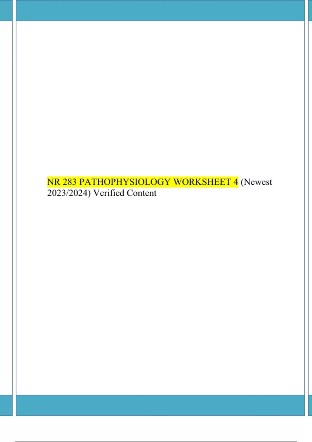 NR 283 PATHOPHYSIOLOGY WORKSHEET 4 (Newest 2023/2024) Verified Content